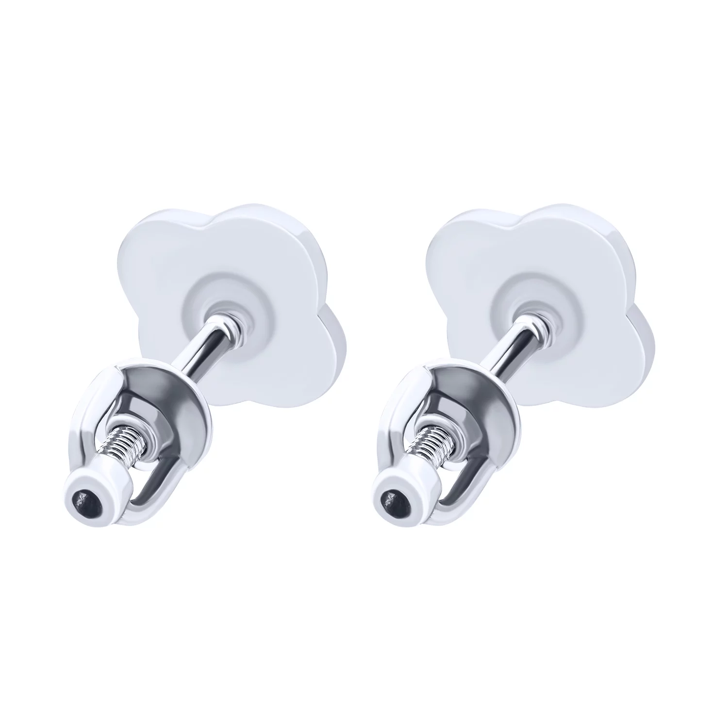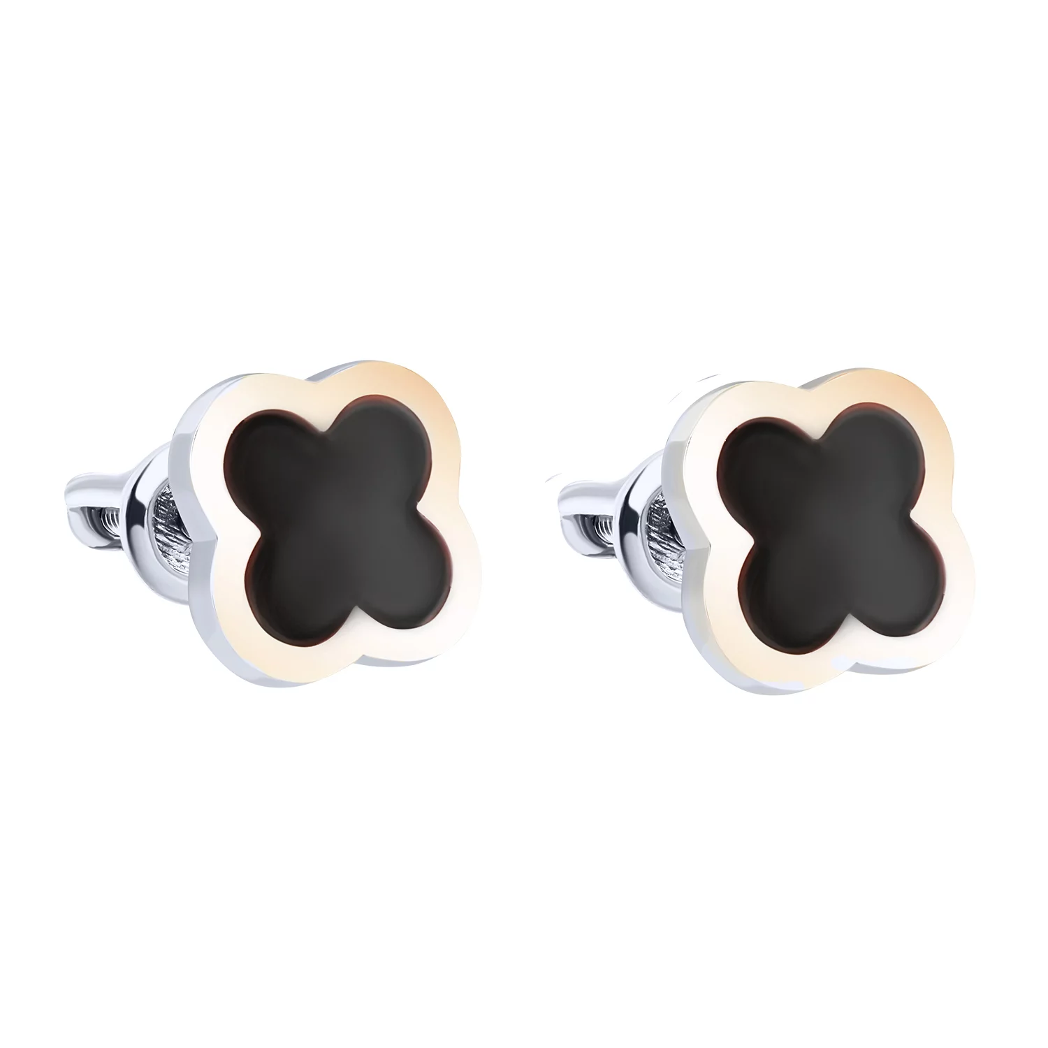 Сережки-гвоздики "Конюшина" срібні з емаллю - 1611367