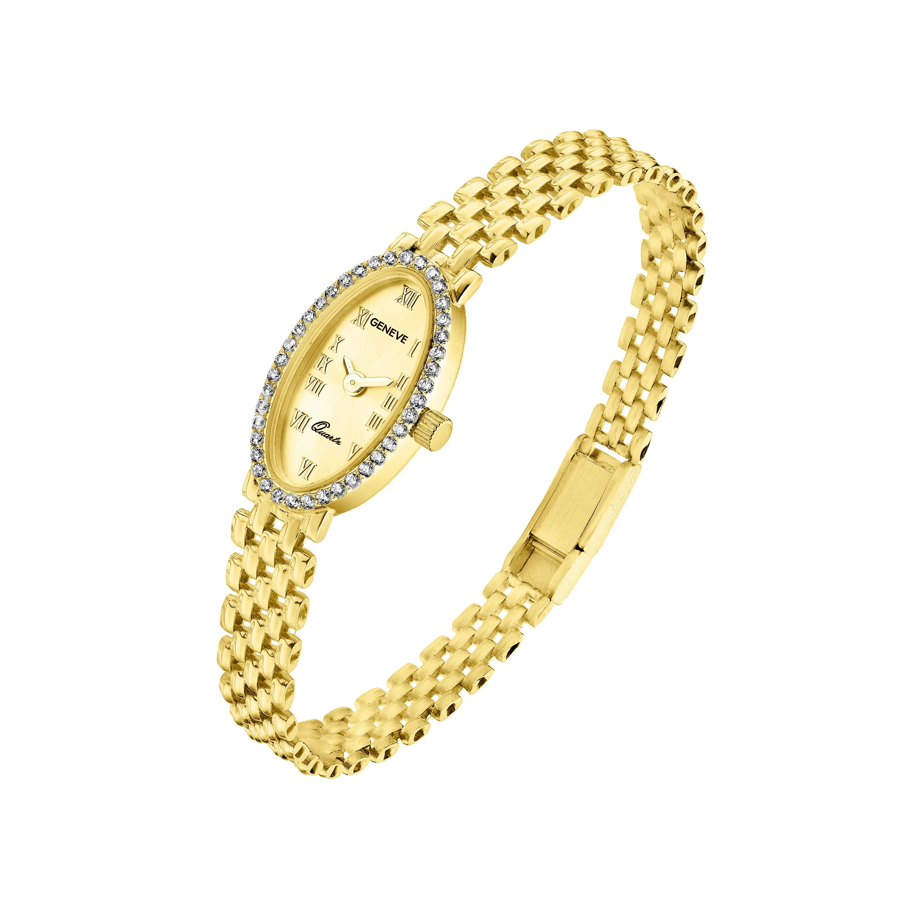 Годинник "Geneve" із жовтого золота наручний з плетінням ролекс та фіанітами - 2028361