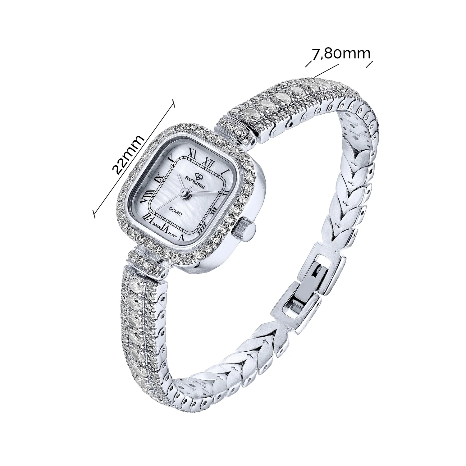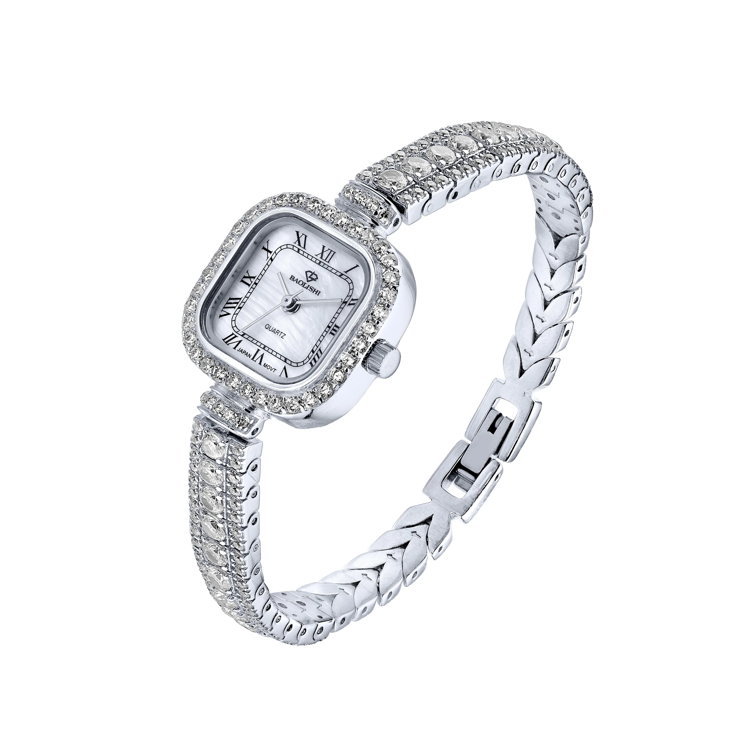 Годинник зі срібла з фіанітами плетіння ролекс - 2205926