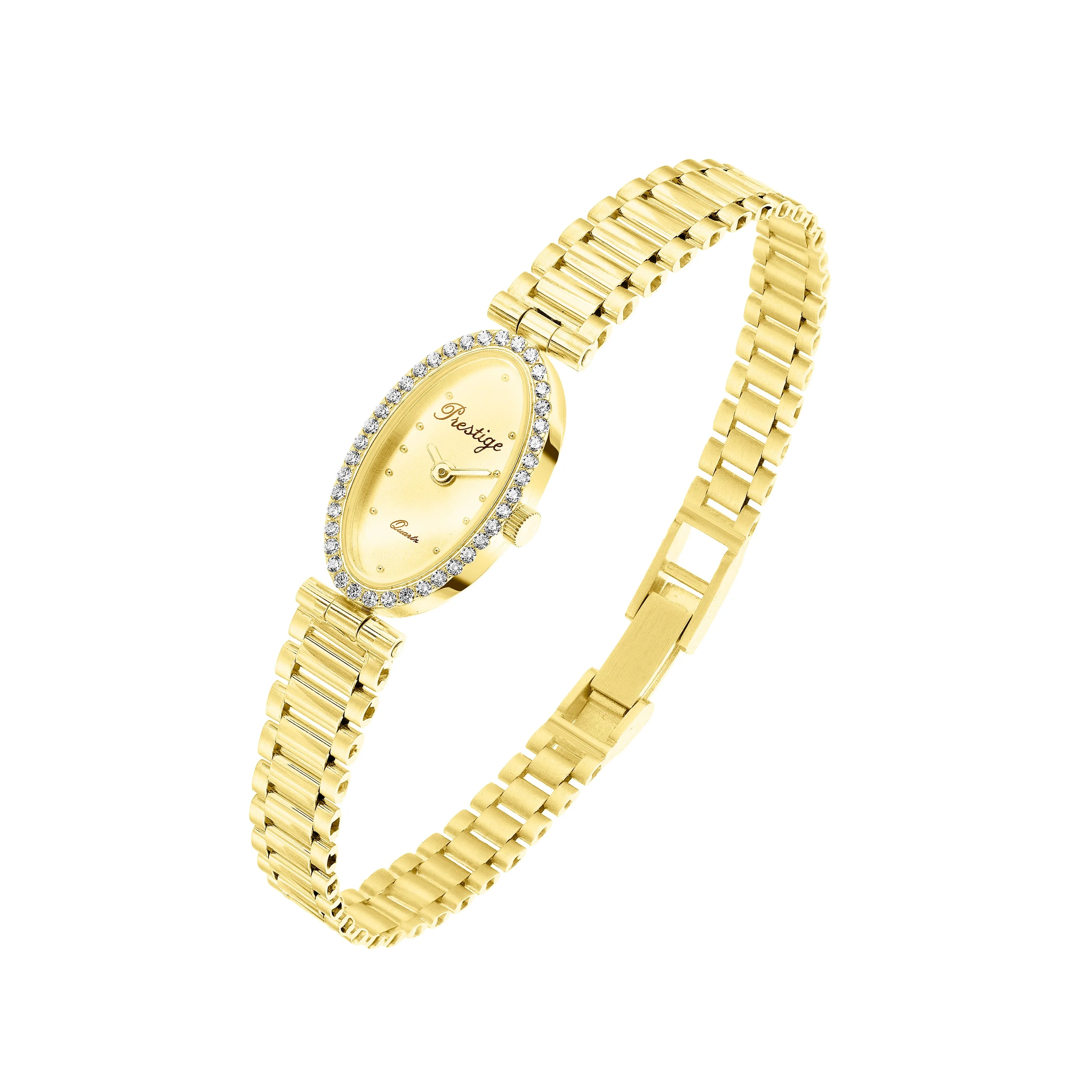 Годинник наручний "Prestige" з лимонного золота з плетінням ролекс та доріжкою фіанітів - 2026813