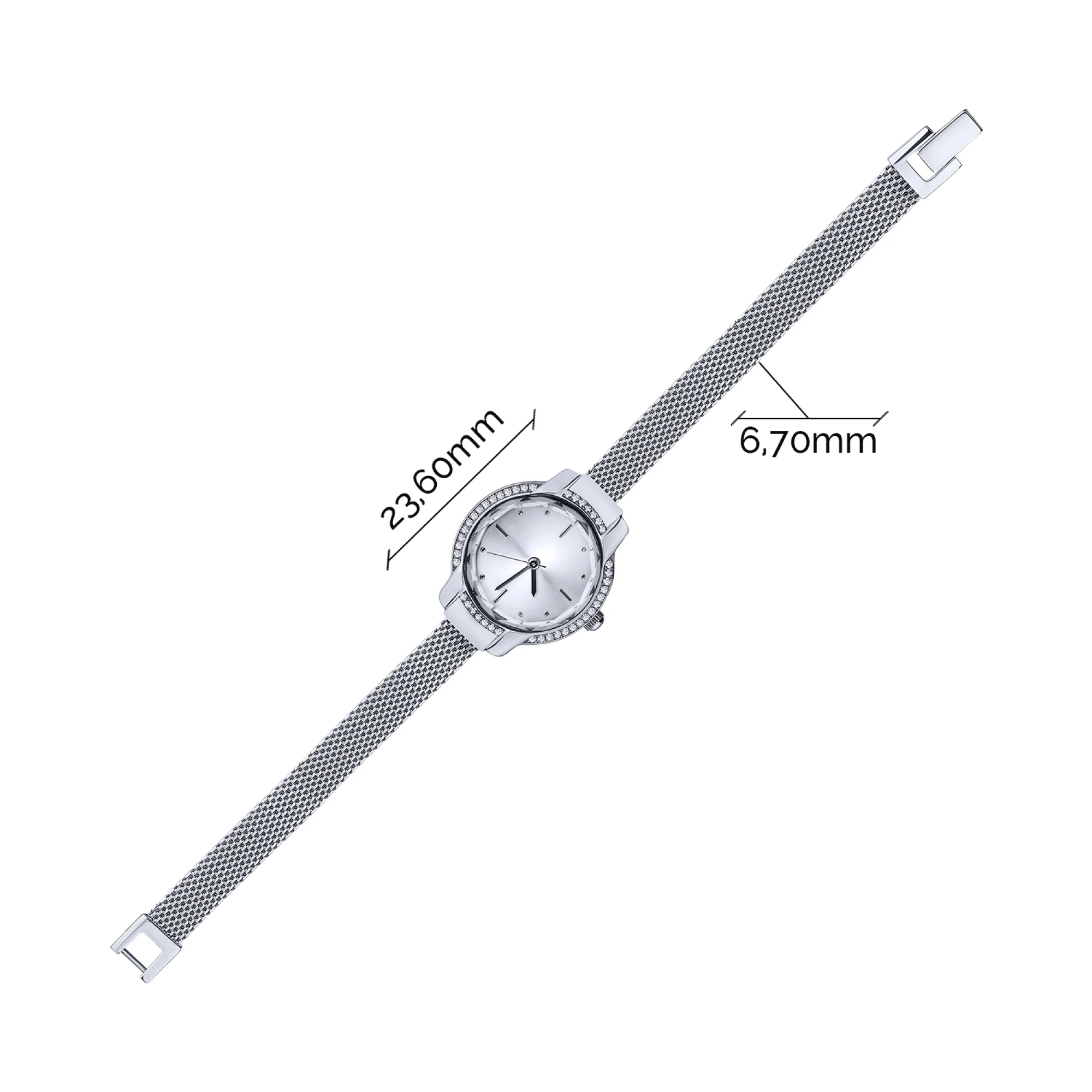 Годинник наручний срібний з фіанітами плетіння фантазія - 2057557