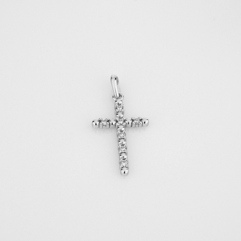 Декоративний хрестик із білого золота з діамантами - 2115936