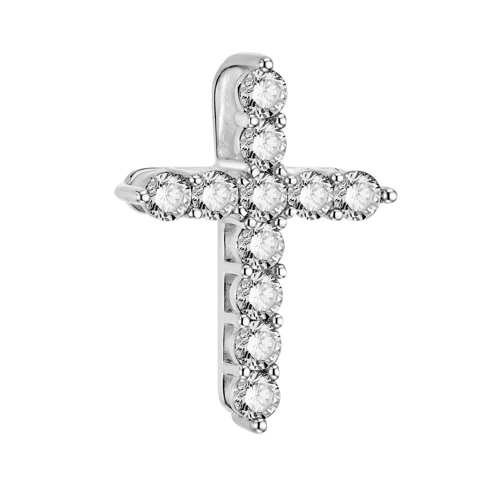 Хрестик декоративний із білого золота з діамантами та сапфірами - 1852425