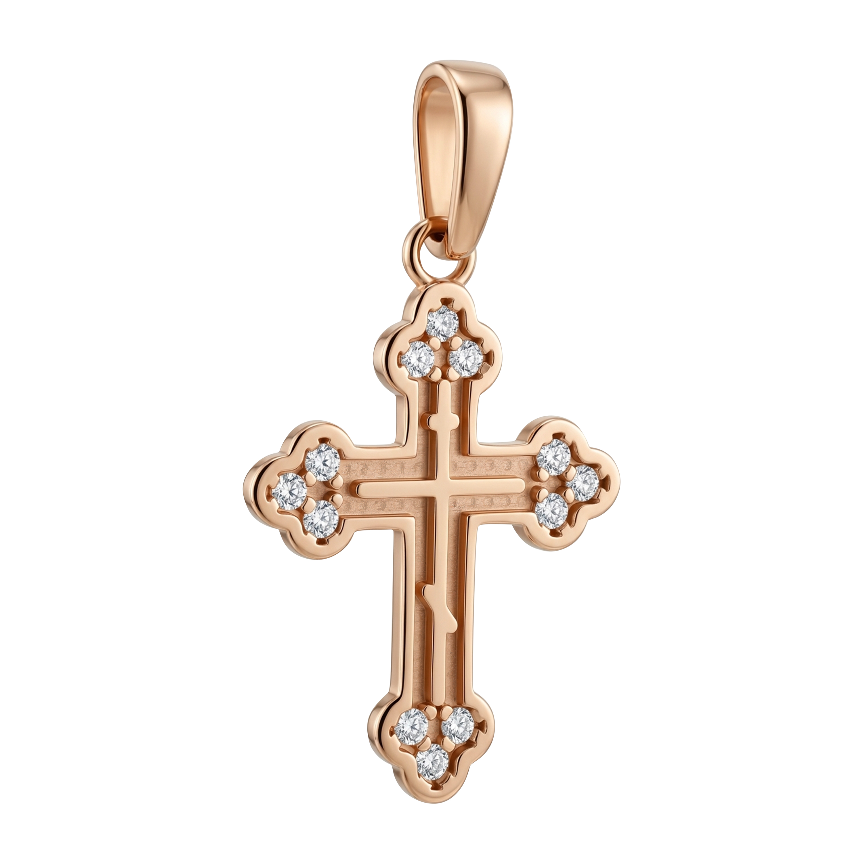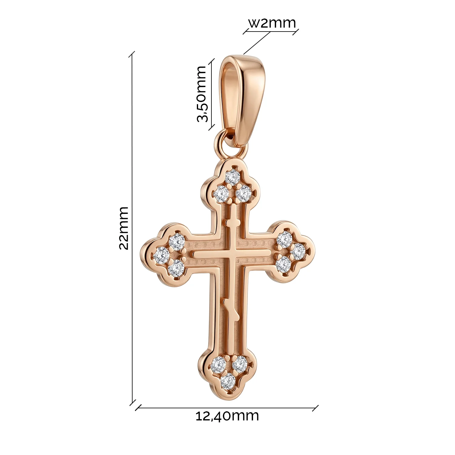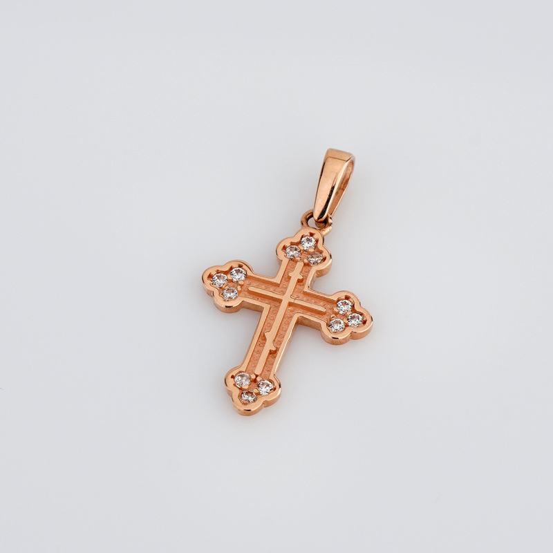 Декоративний хрестик з червоного золота з розсипом фіанітів - 2189213