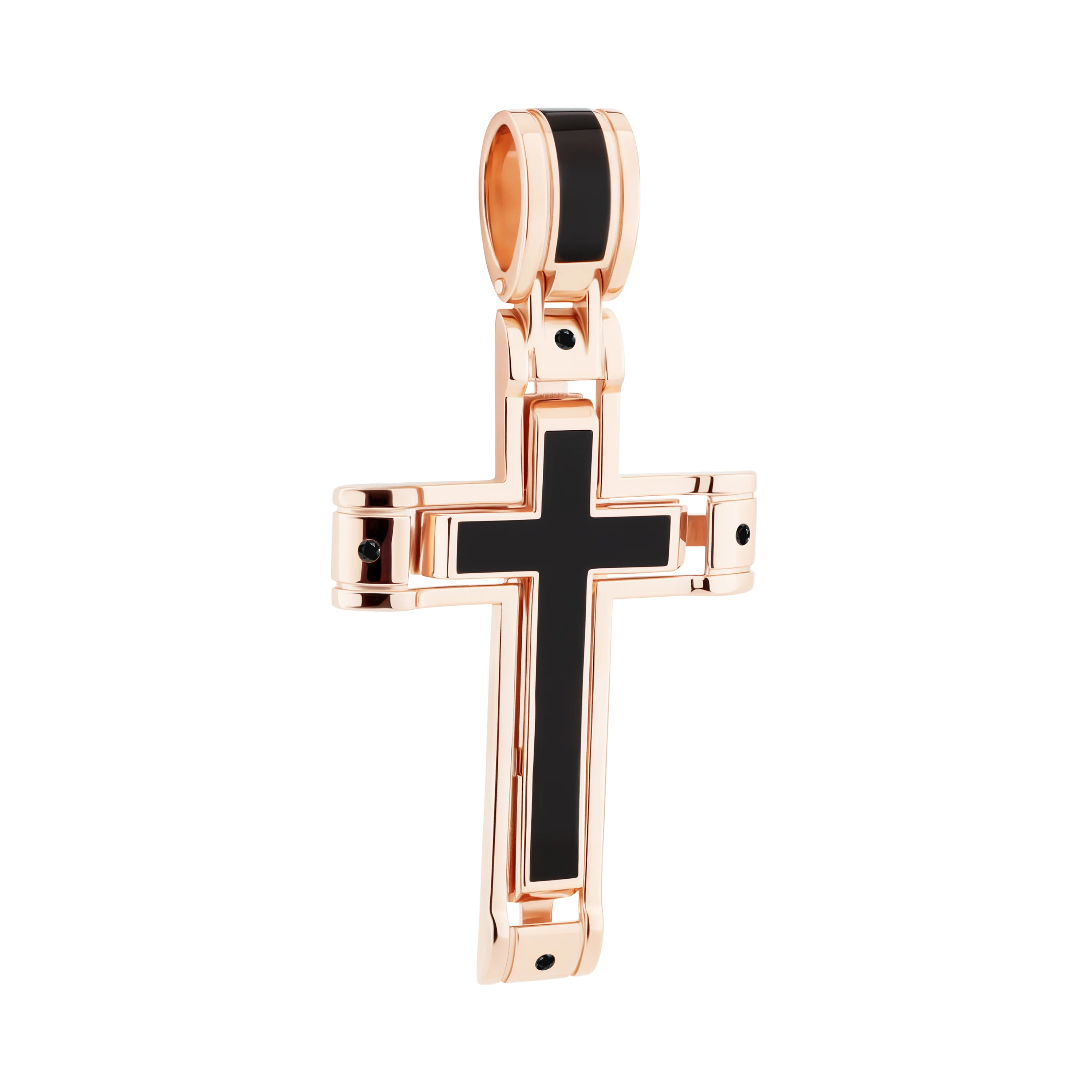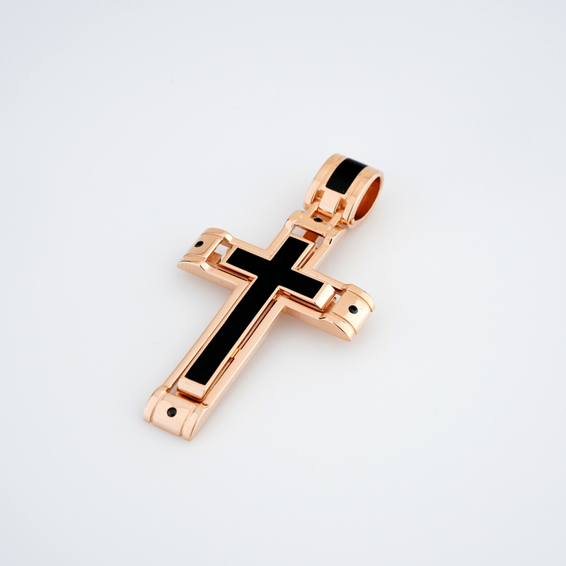 Декоративний хрестик з червоного золота з фіанітами та емаллю - 2193733