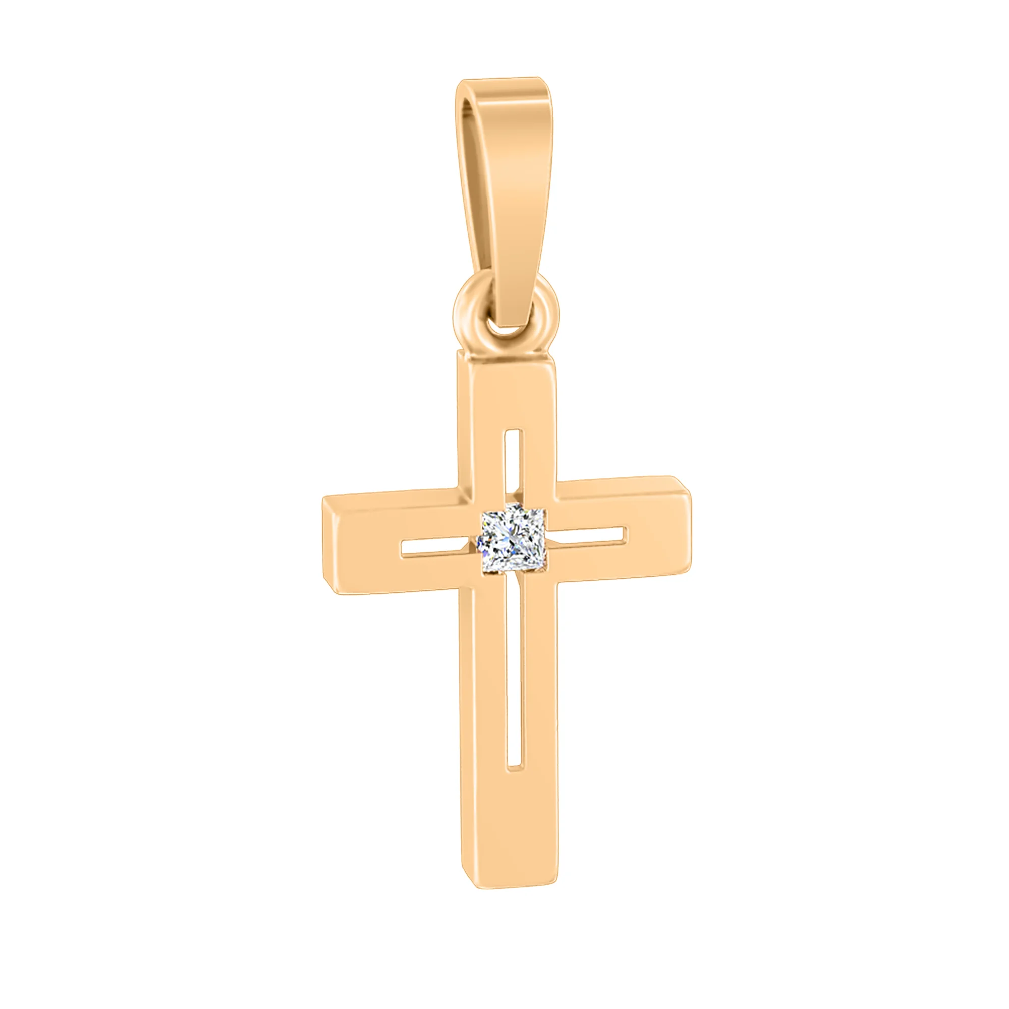 Декоративний хрестик із червоного золота з фіанітом - 2120813