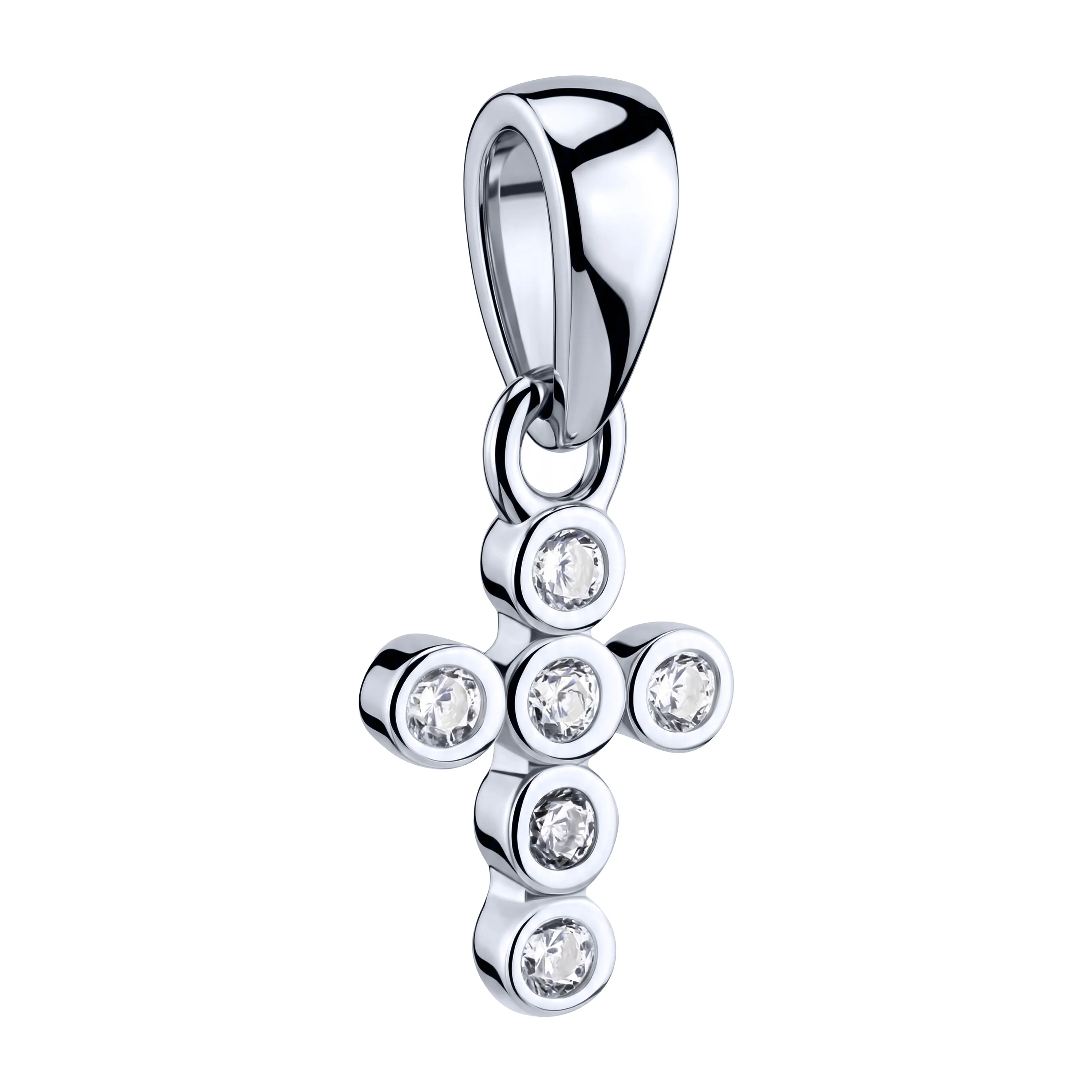 Декоративний хрестик зі срібла з фіанітами - 2194693