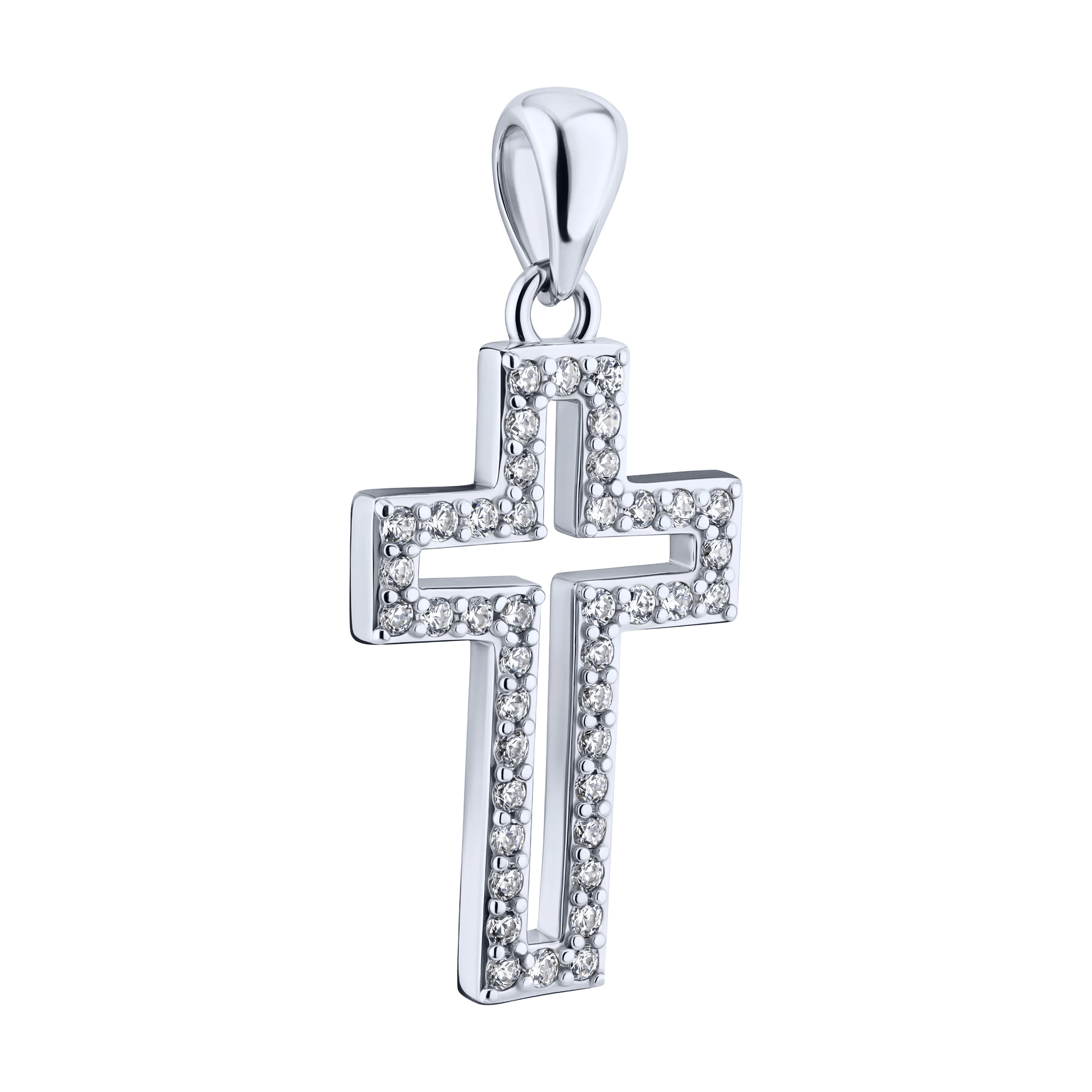 Декоративний хрестик зі срібла з фіанітами - 2206377