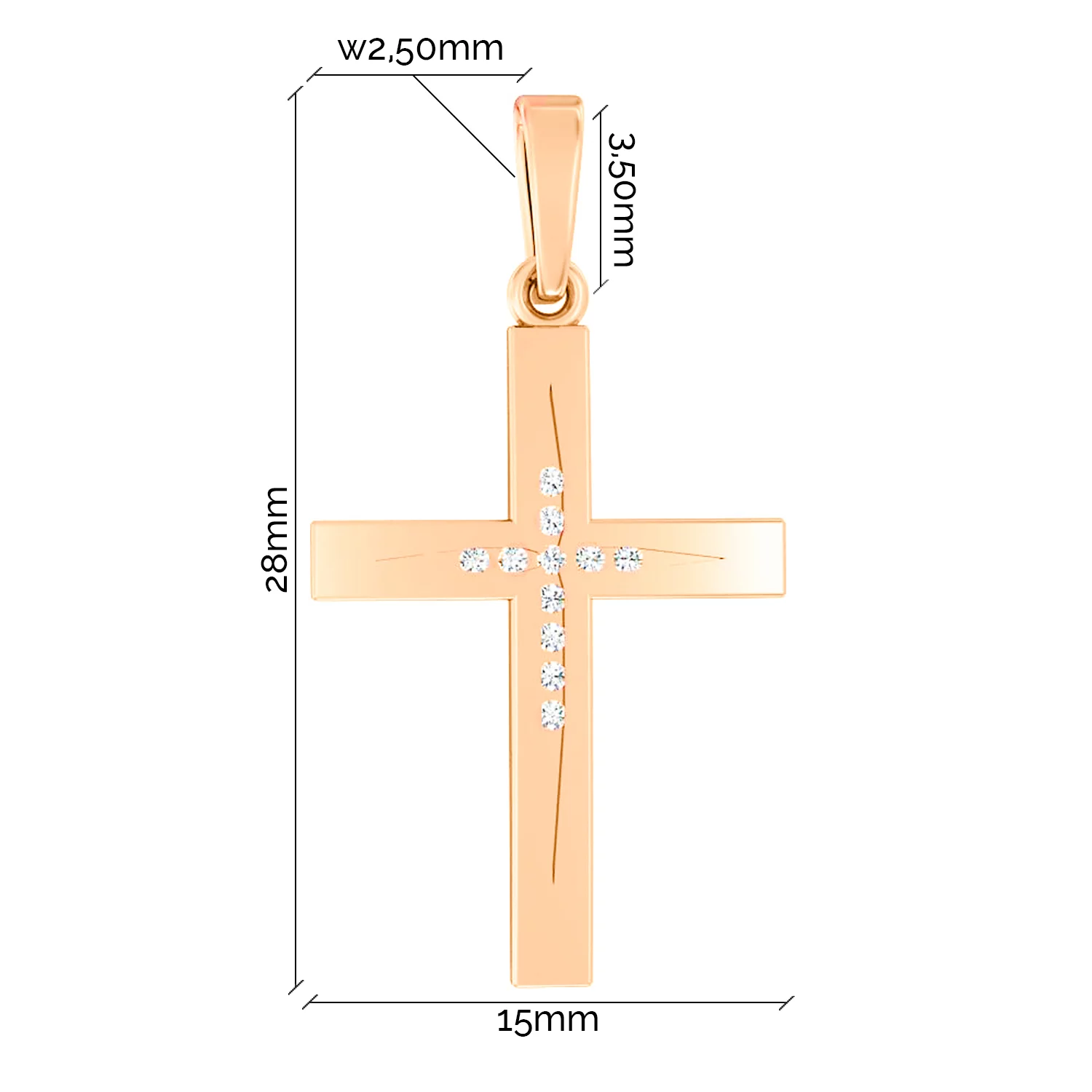 Стильний декоративний подвійний хрестик із червоного золота з діамантами - 1919553