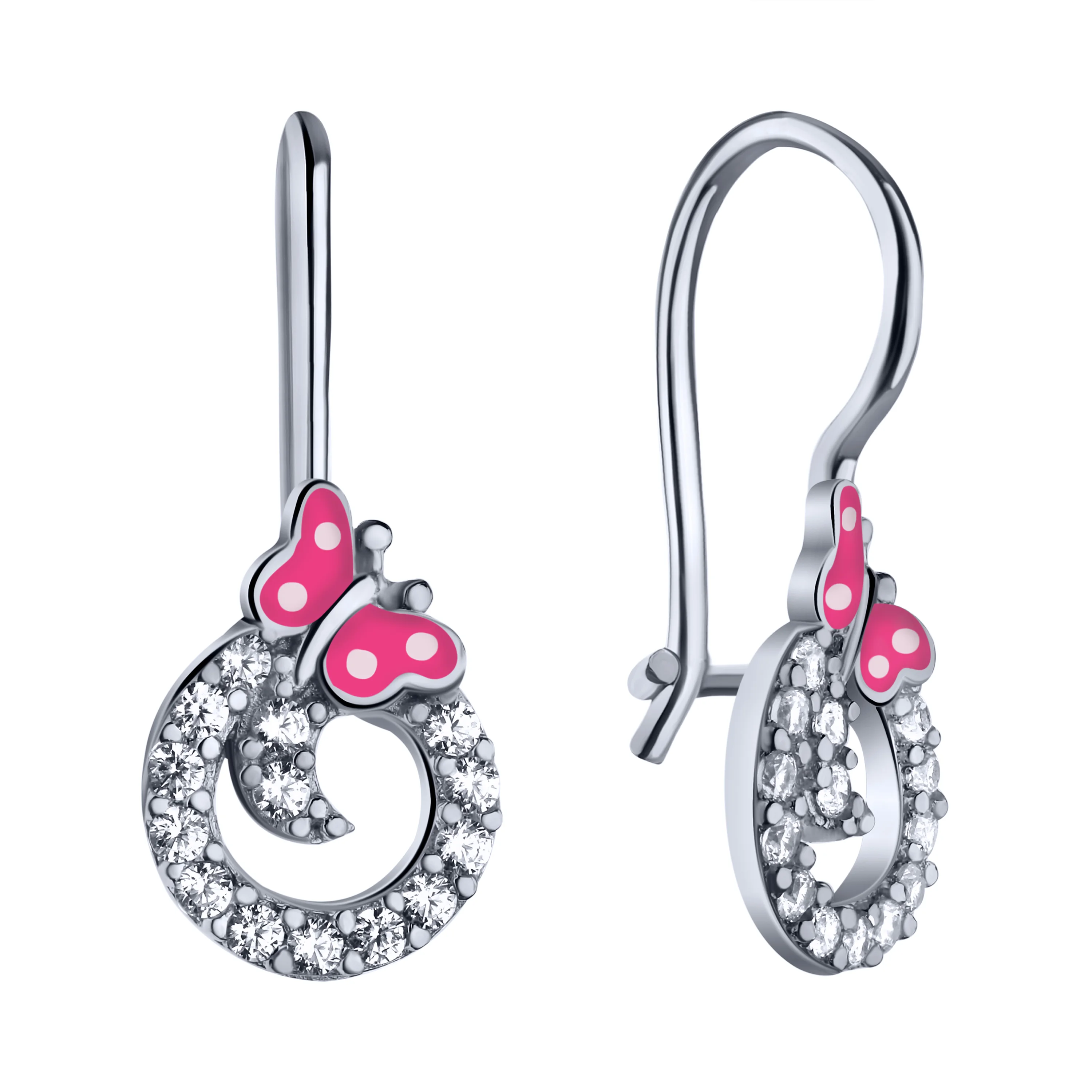 Дитячі срібні сережки-петлі "Метелик" з фіанітами - 2004872