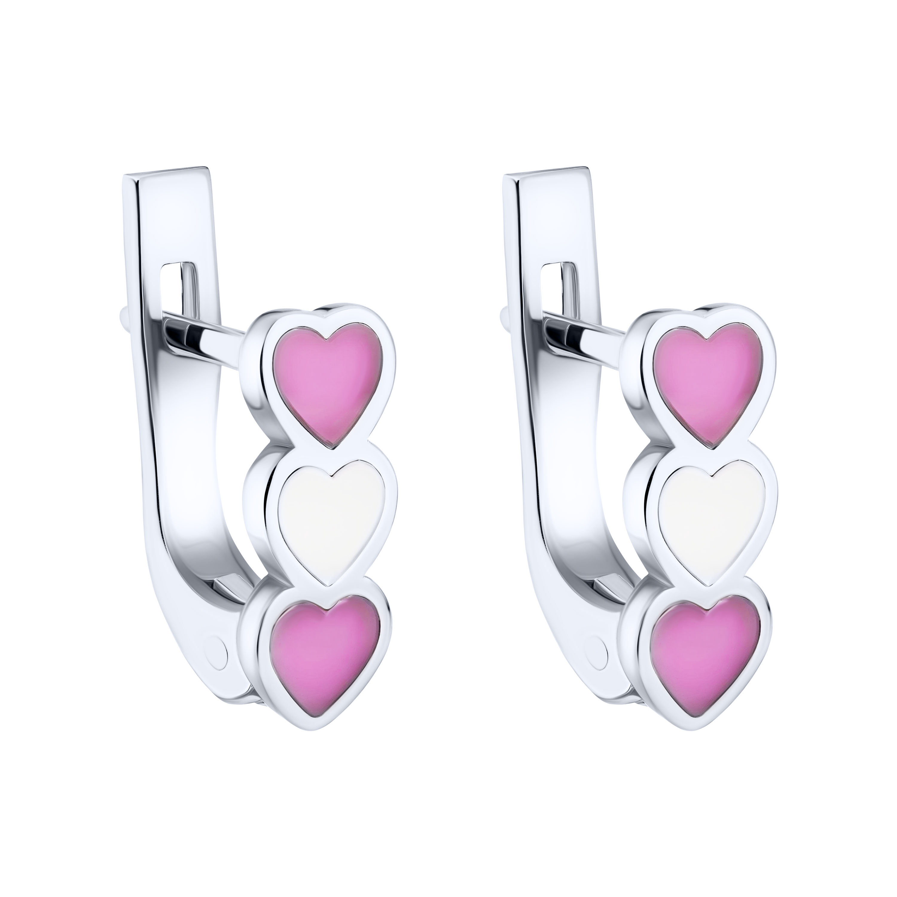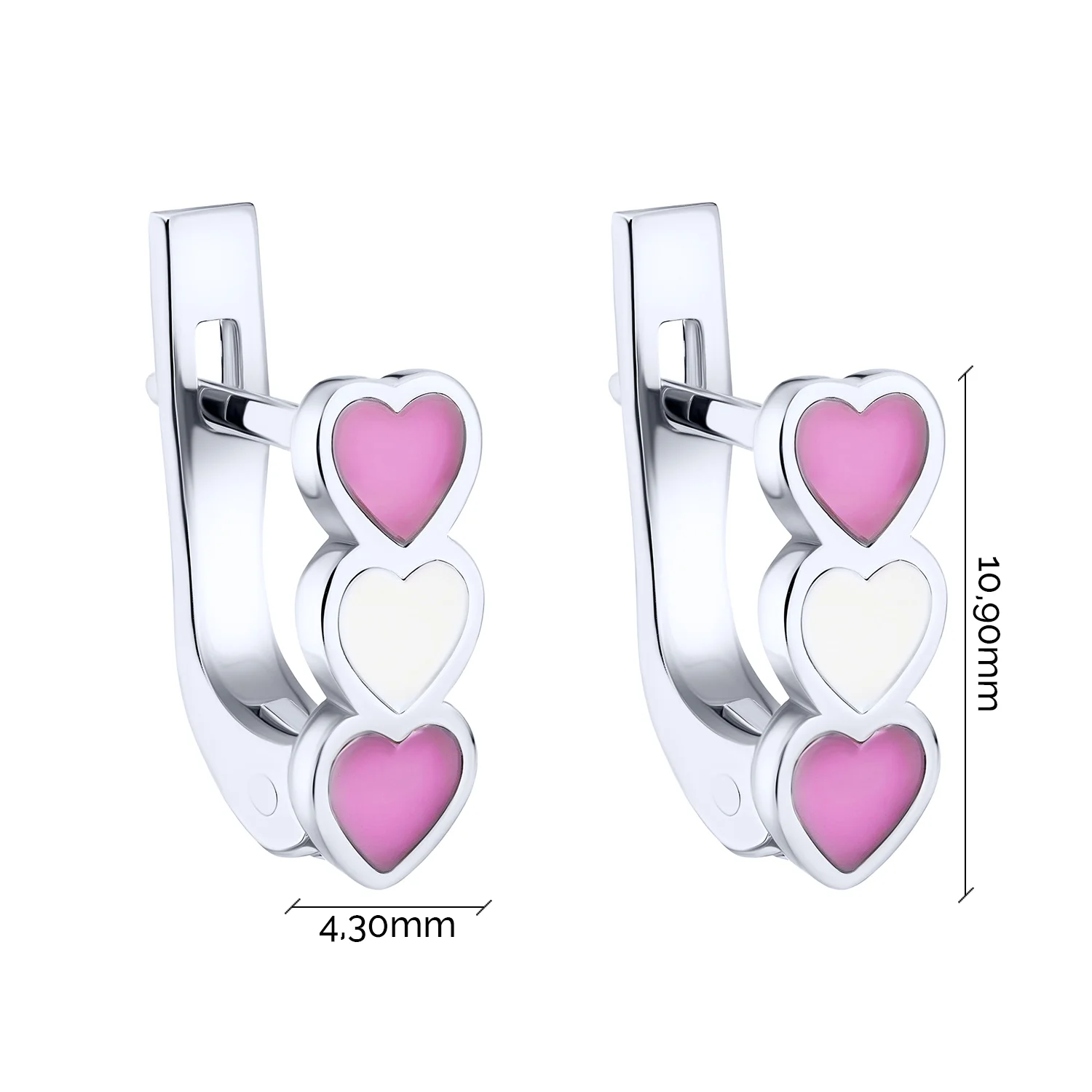 Дитячі срібні сережки "Сердечка" з емаллю - 2172700