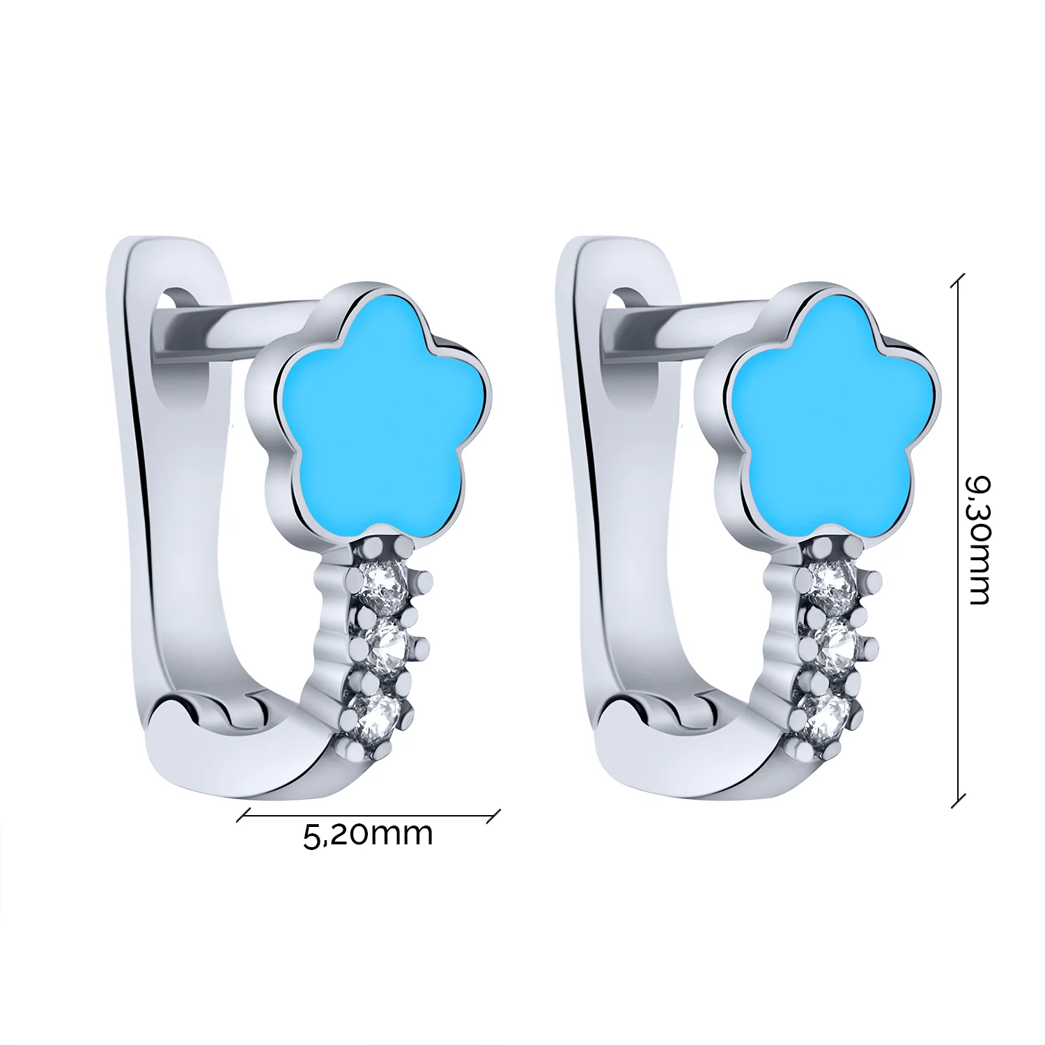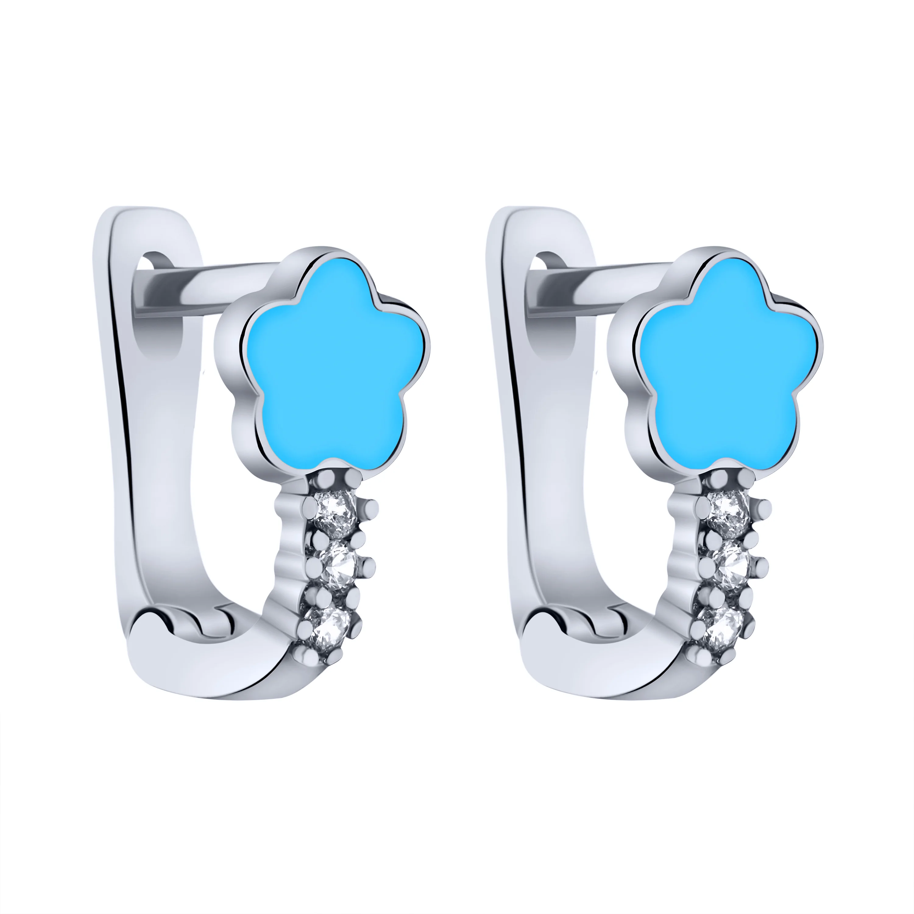 Дитячі срібні сережки "Квітка" з фіанітами та емаллю - 2008245