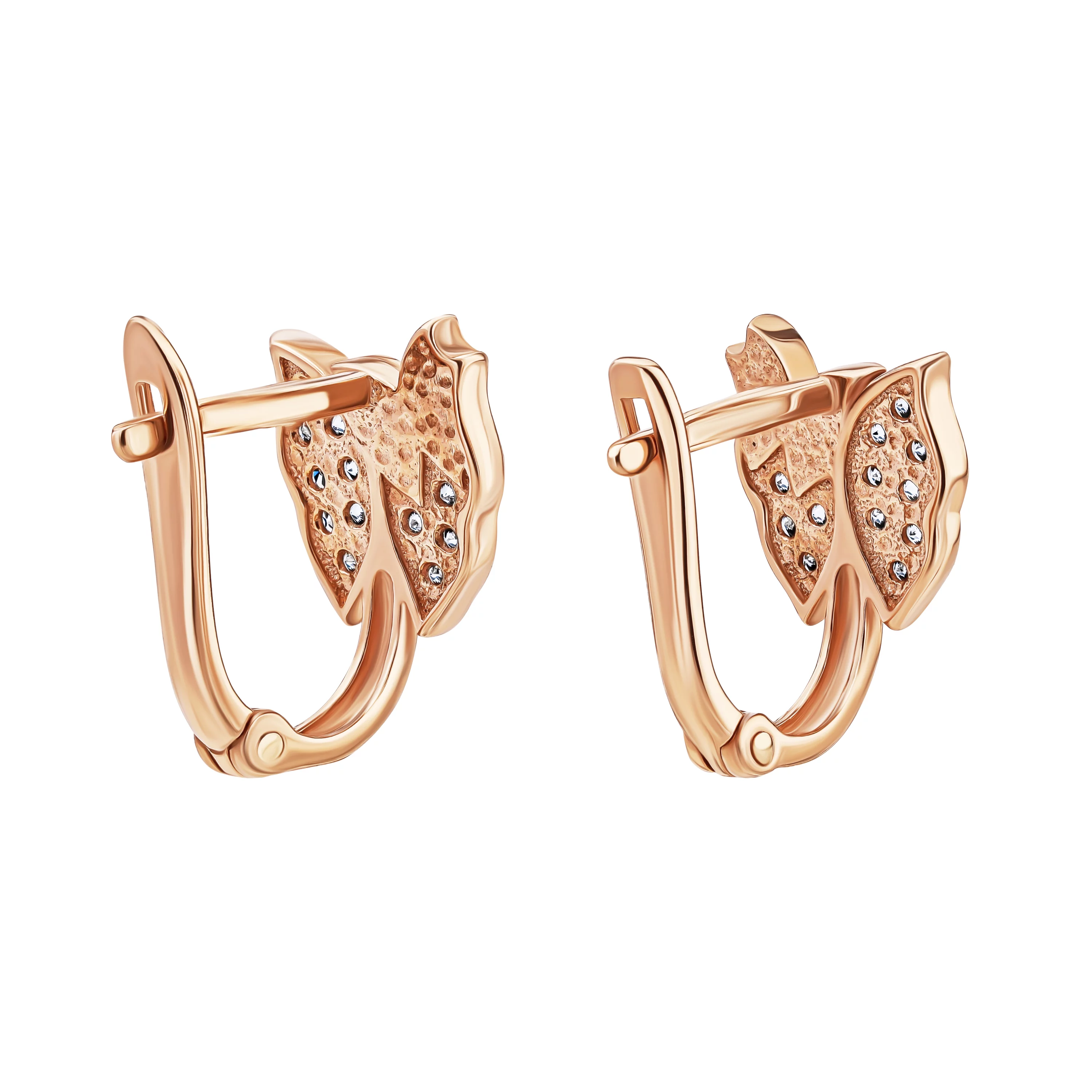 Дитячі сережки "Квіточка" з червоного золота з фіанітом та емаллю - 1919314