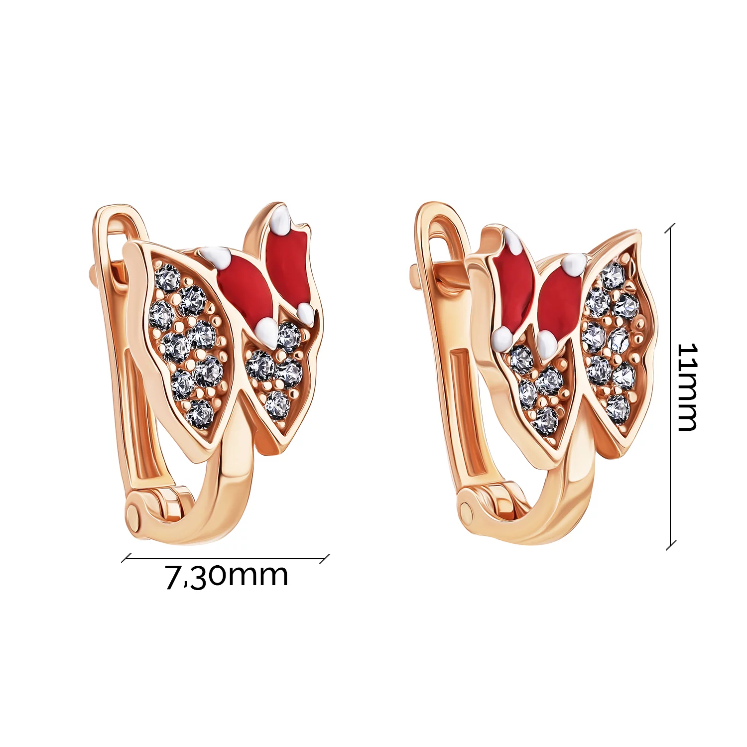 Сережки з підвісками з червоного золота з фіанітами і емаллю - 1675025