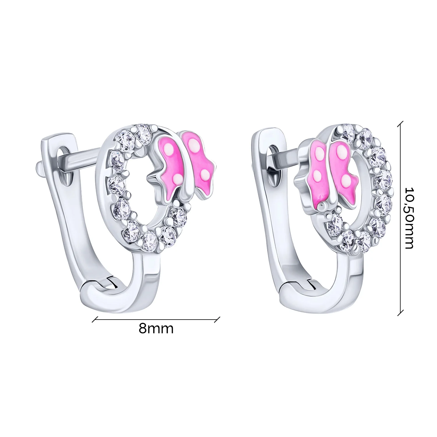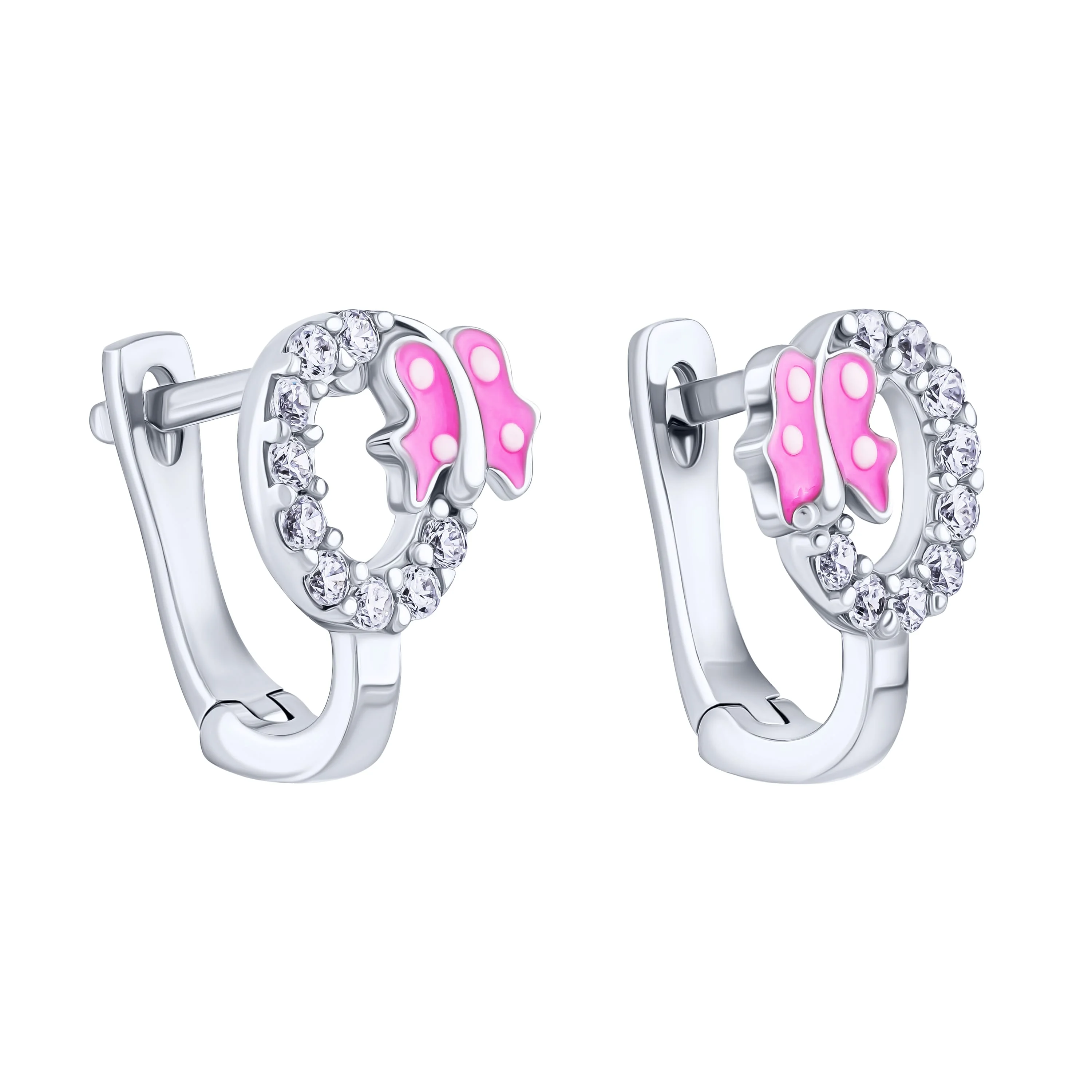 Дитячі сережки "Метелик" з доріжкою фіанітів та емаллю у сріблі - 1989063