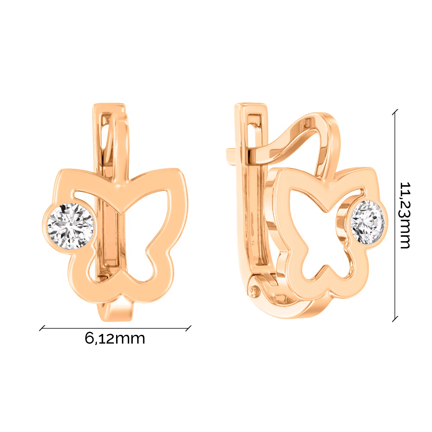 Сережки дитячі з червоного золота "Киця у короні" з фіанітами - 1775168