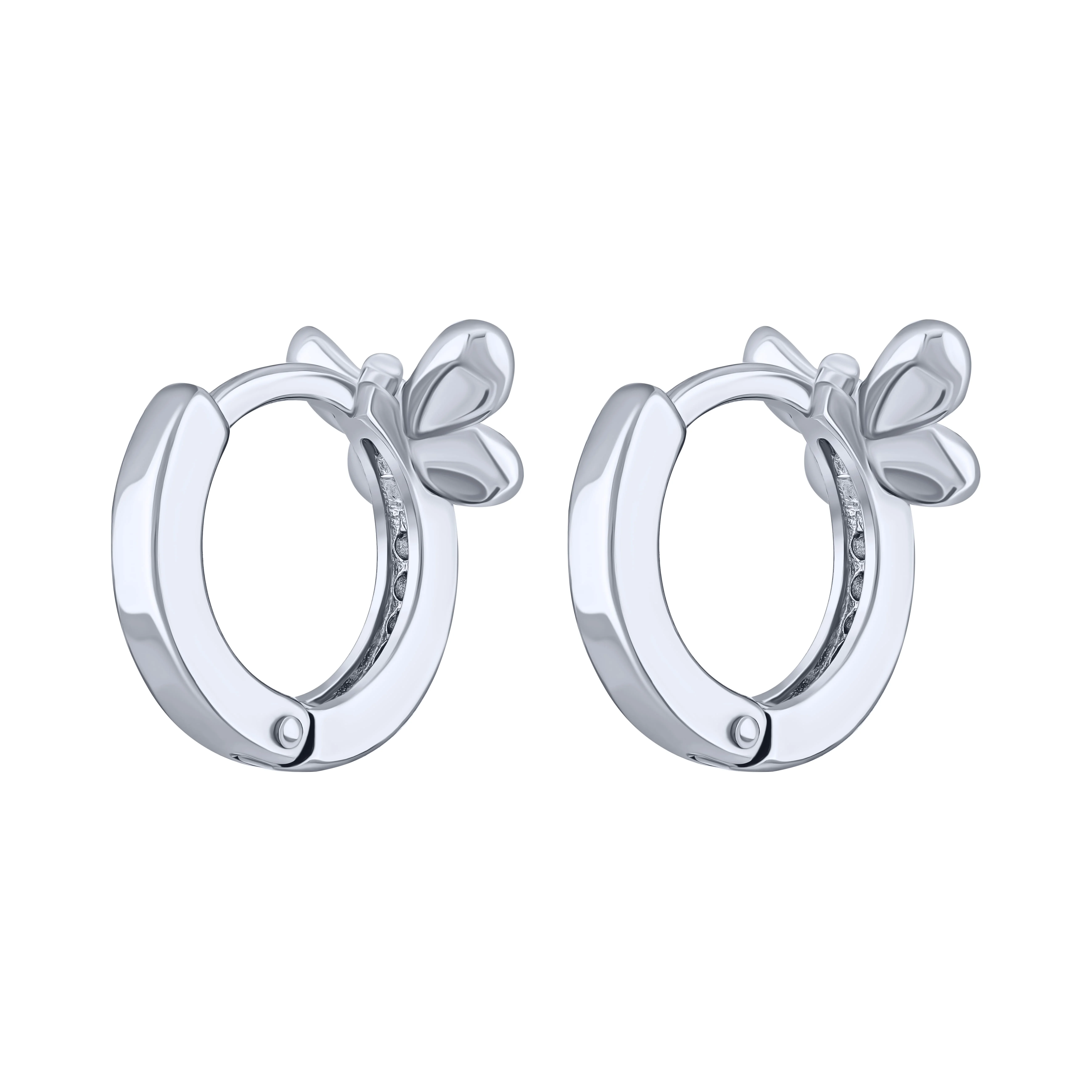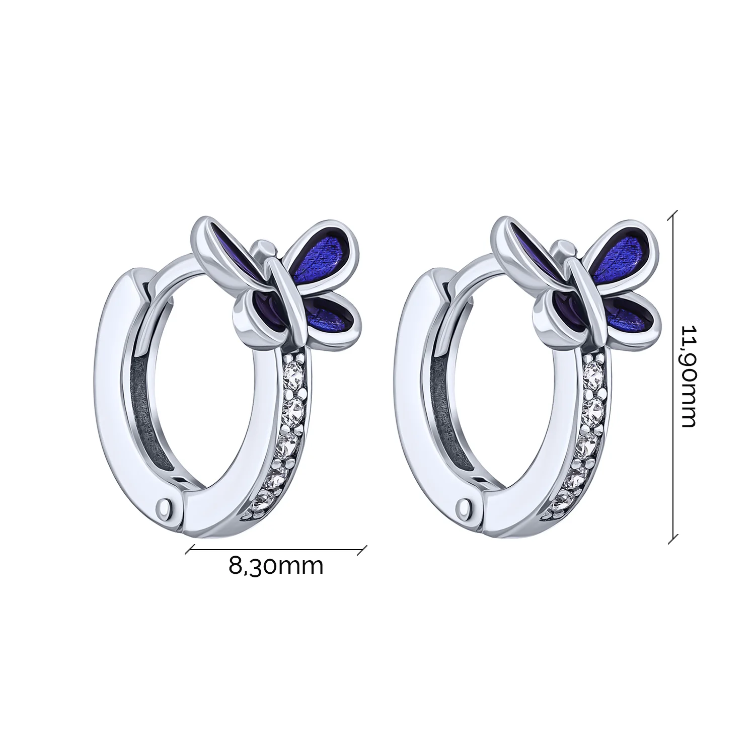 Дитячі сережки-кільця "Метелик" зі срібла з фіанітами та емаллю - 2082205