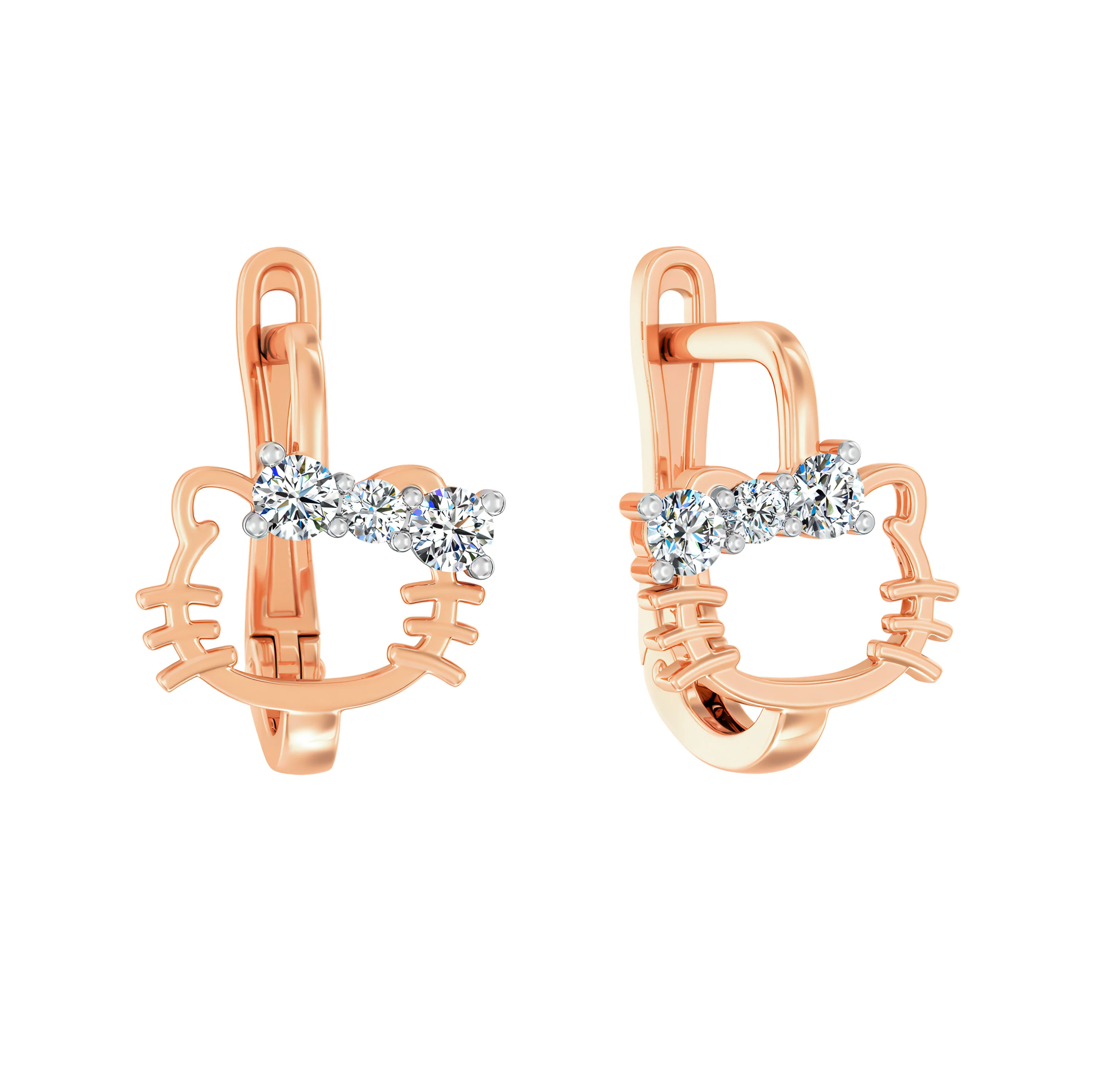 Дитячі сережки "Кошенята" у червоному золоті з фіанітами - 2117887
