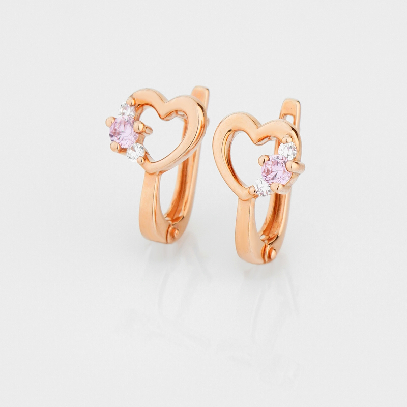 Дитячі сережки "Серце" із червоного золота з фіанітами - 2118107