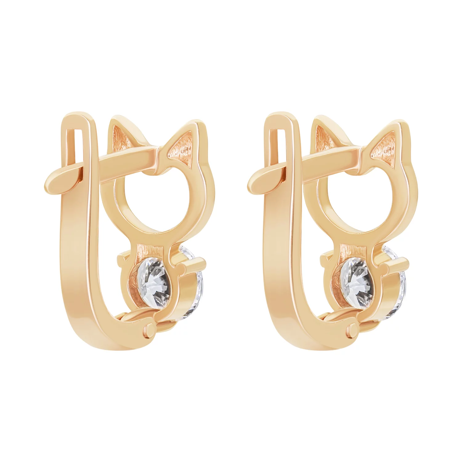 Сережки дитячі з червоного золота "Киця у короні" з фіанітами - 1775168