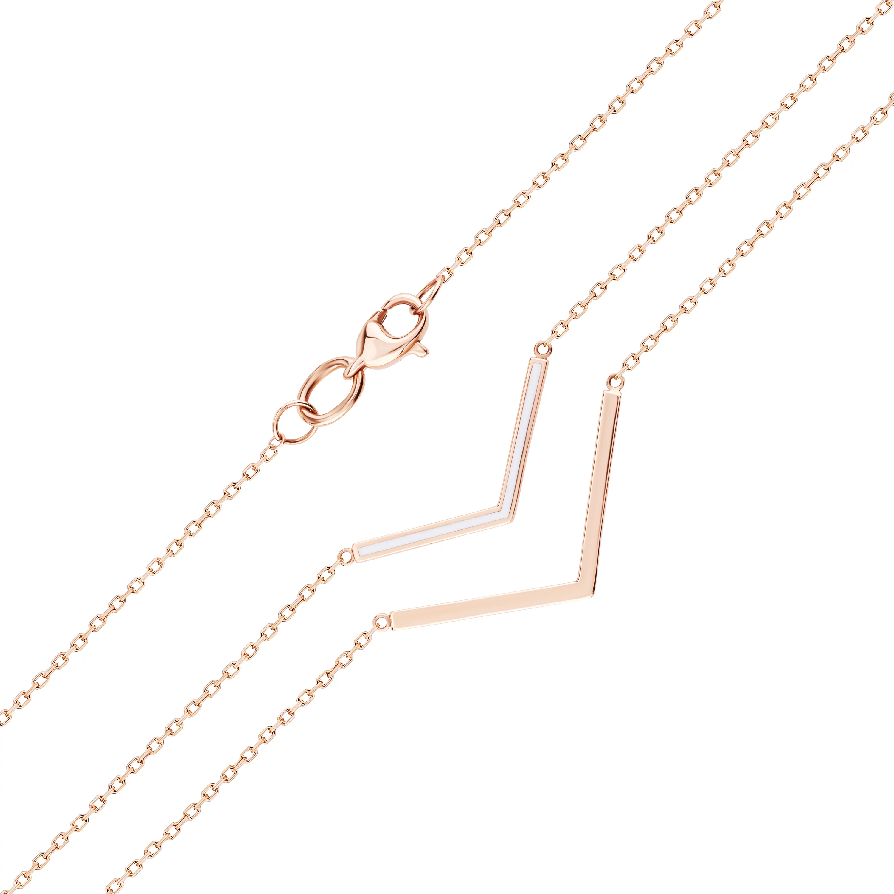 Кольє з підвісом "Флора" з червоного золота з фіанітом з емаллю та якірним плетінням - 1941998