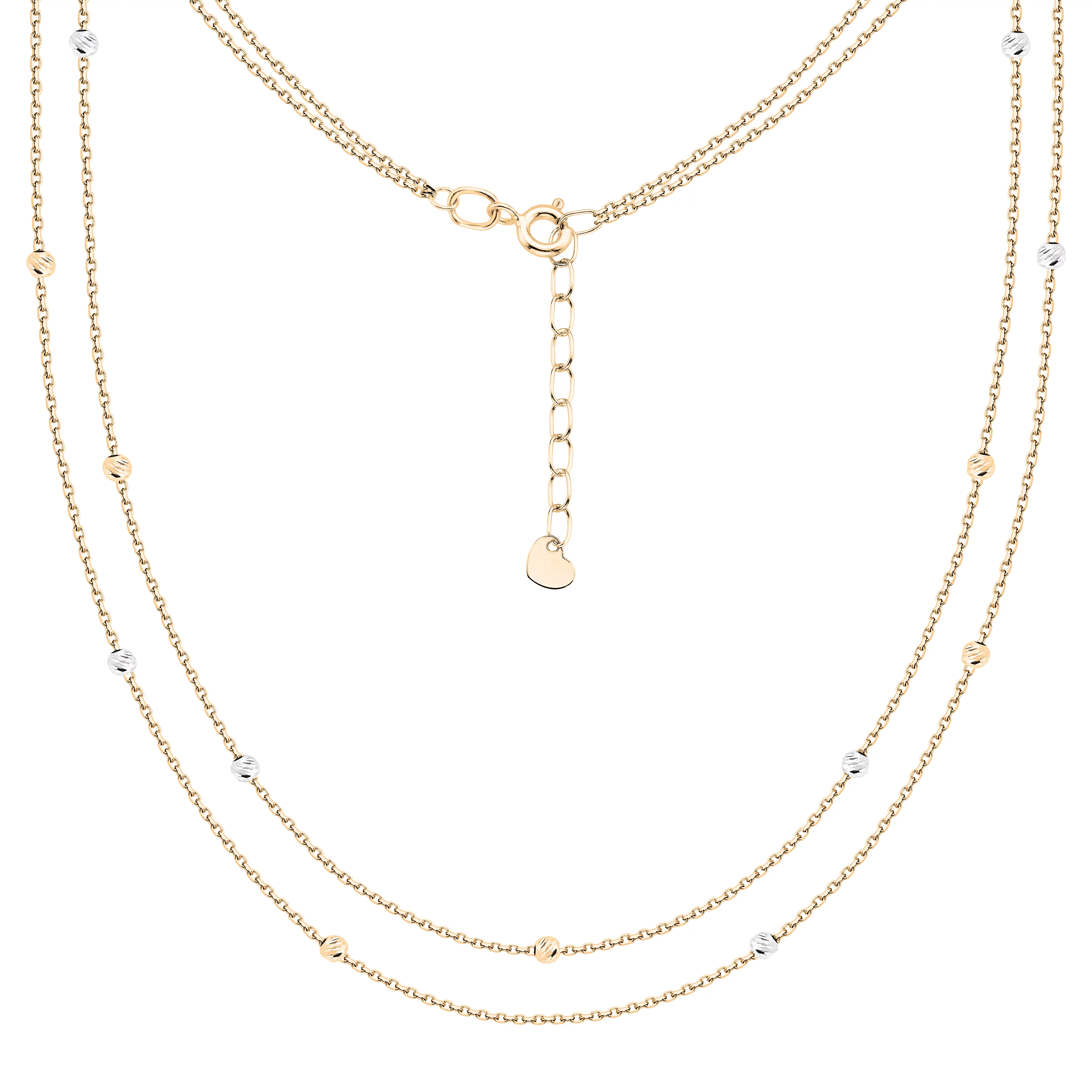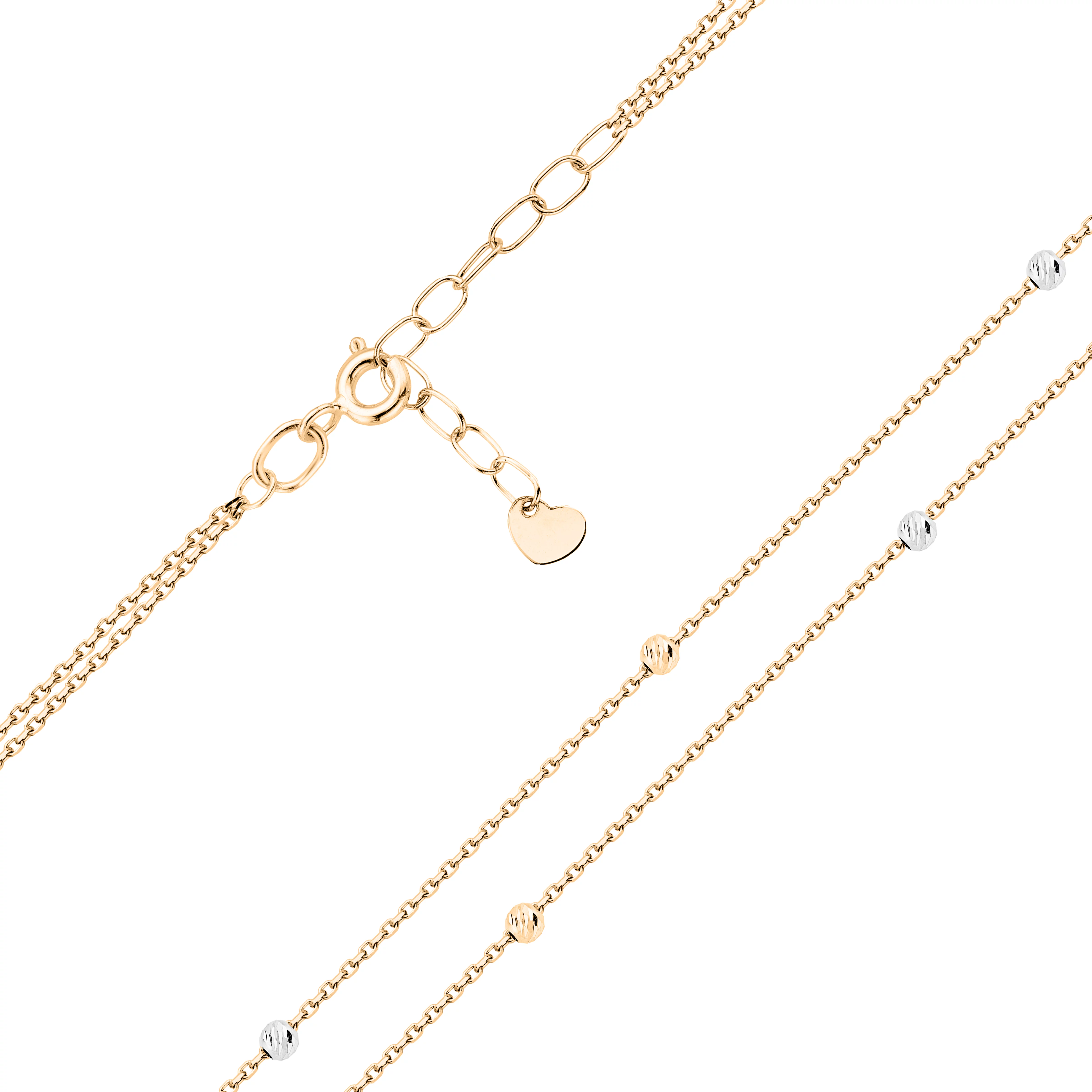 Подвійне кольє в комбінованому золоті з кульками плетіння якірне - 1823891