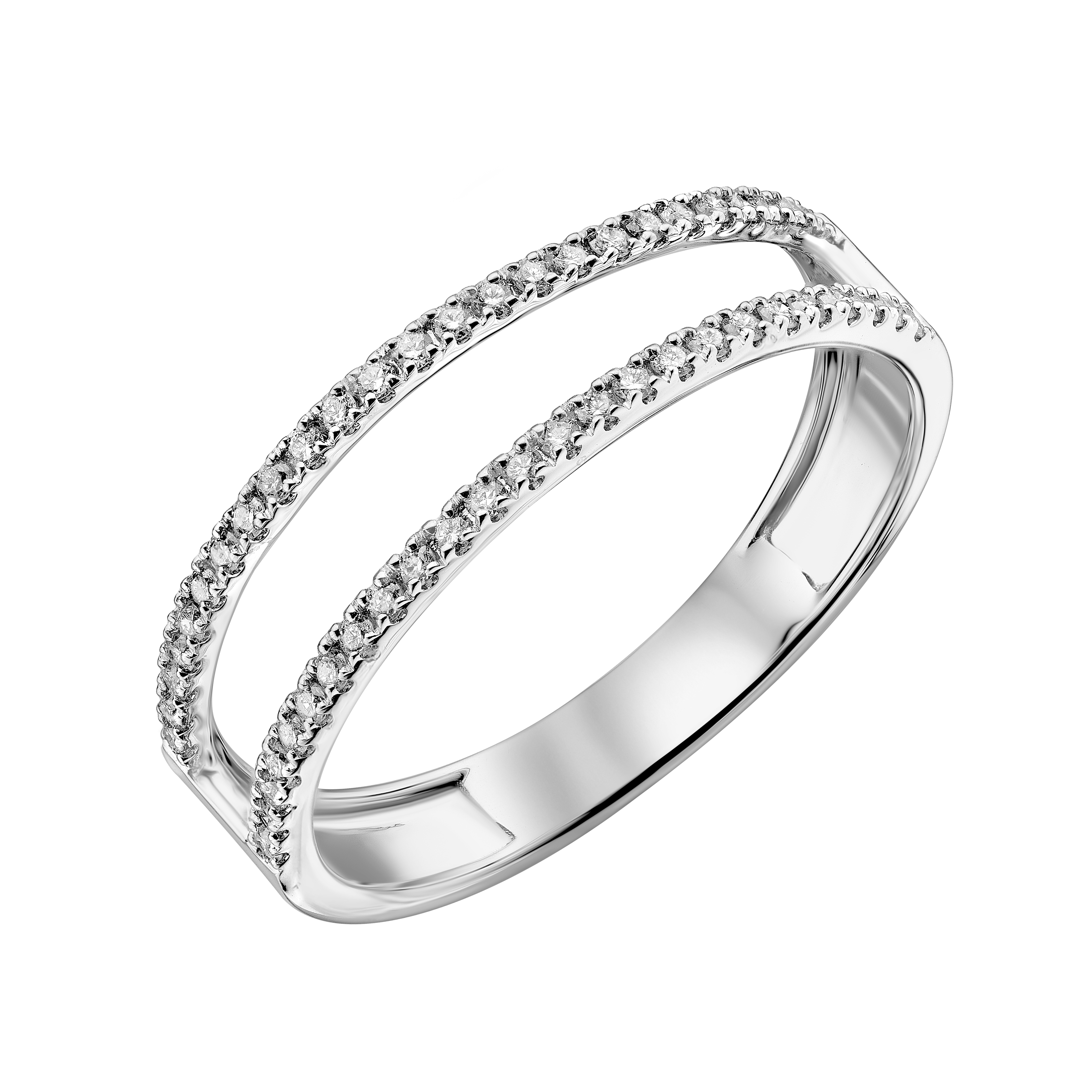 Подвійна каблучка з білого золота з діамантами - 2149825