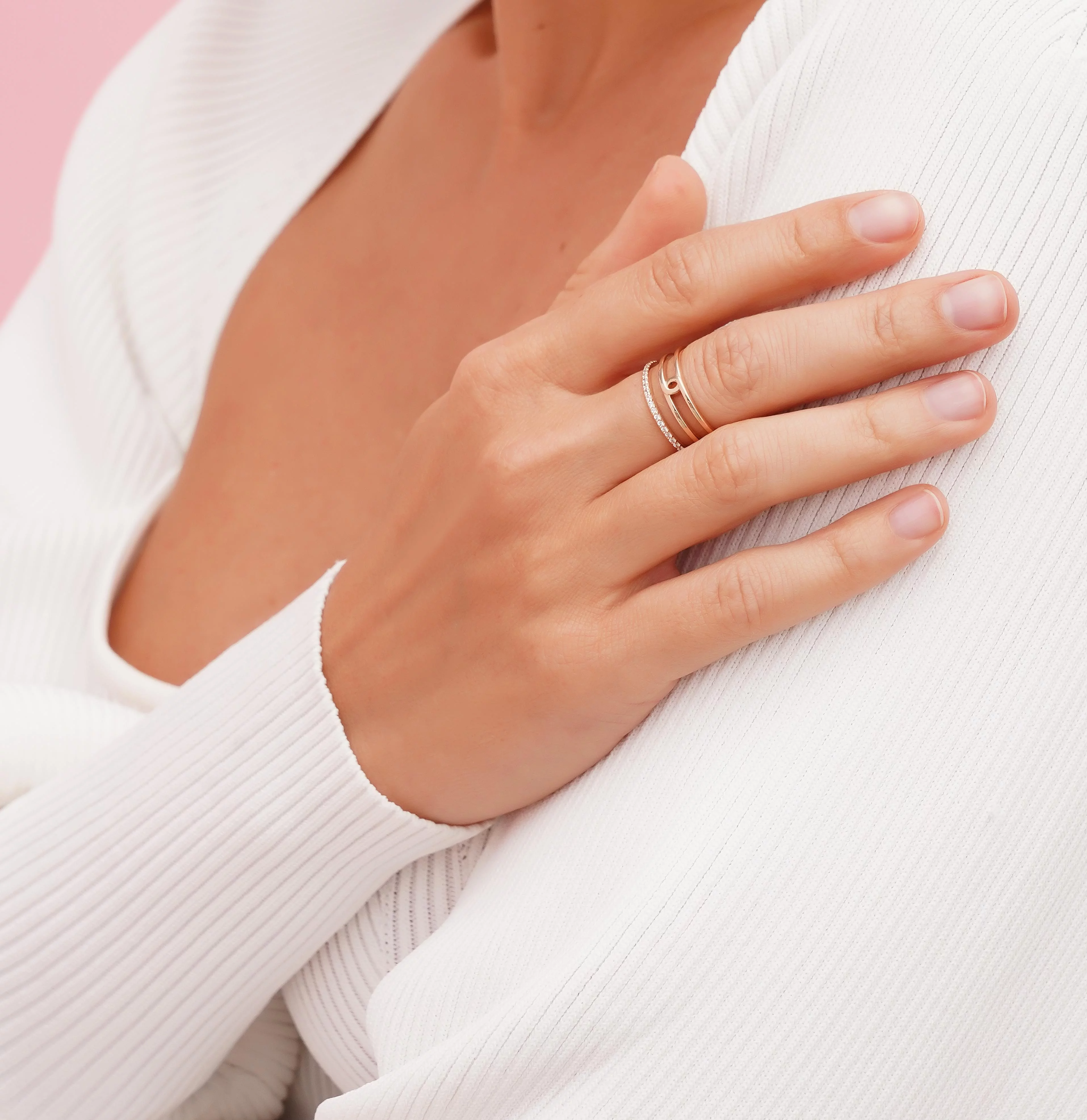 Подвійна каблучка "Переплетіння" з фіанітами з червоного золота - 1736141