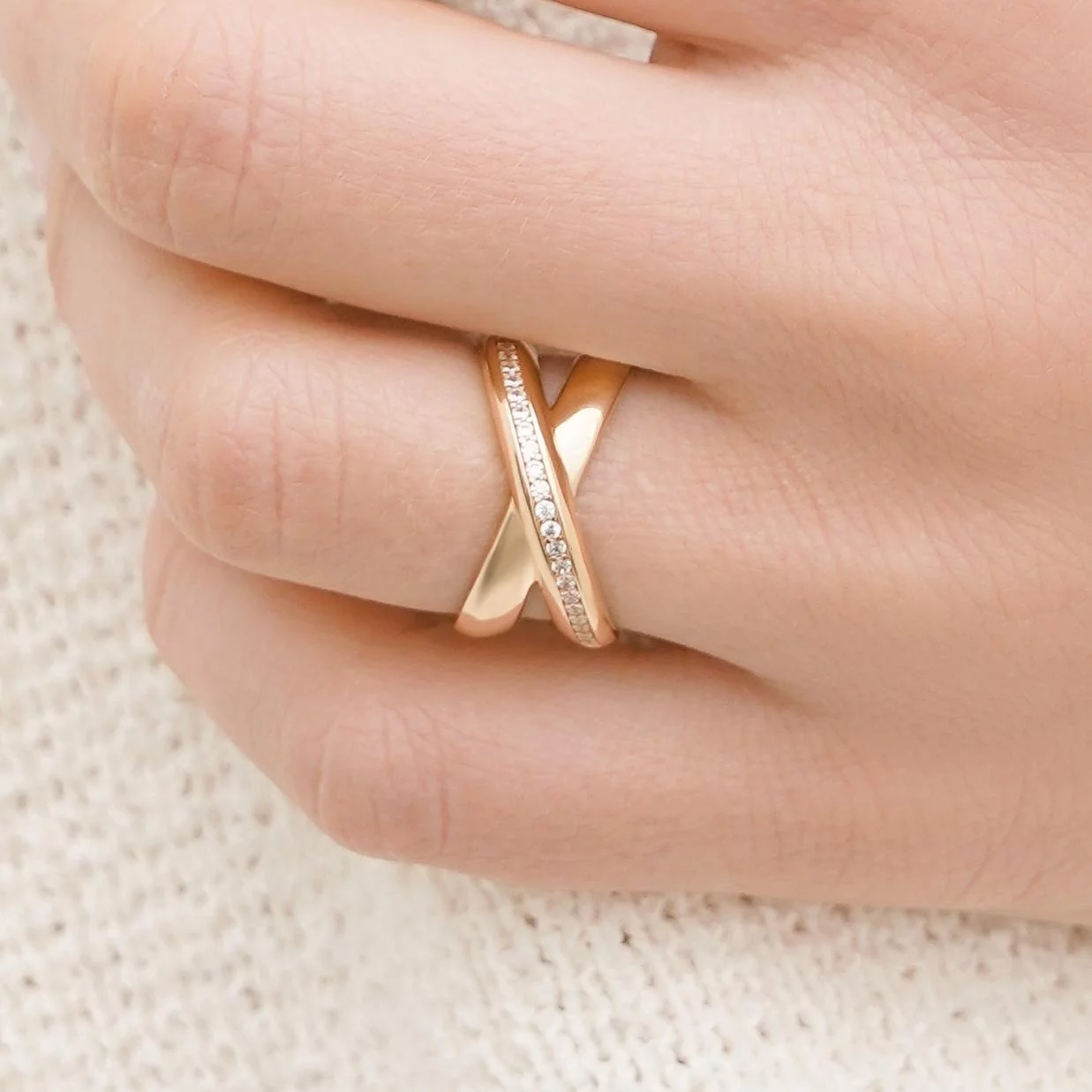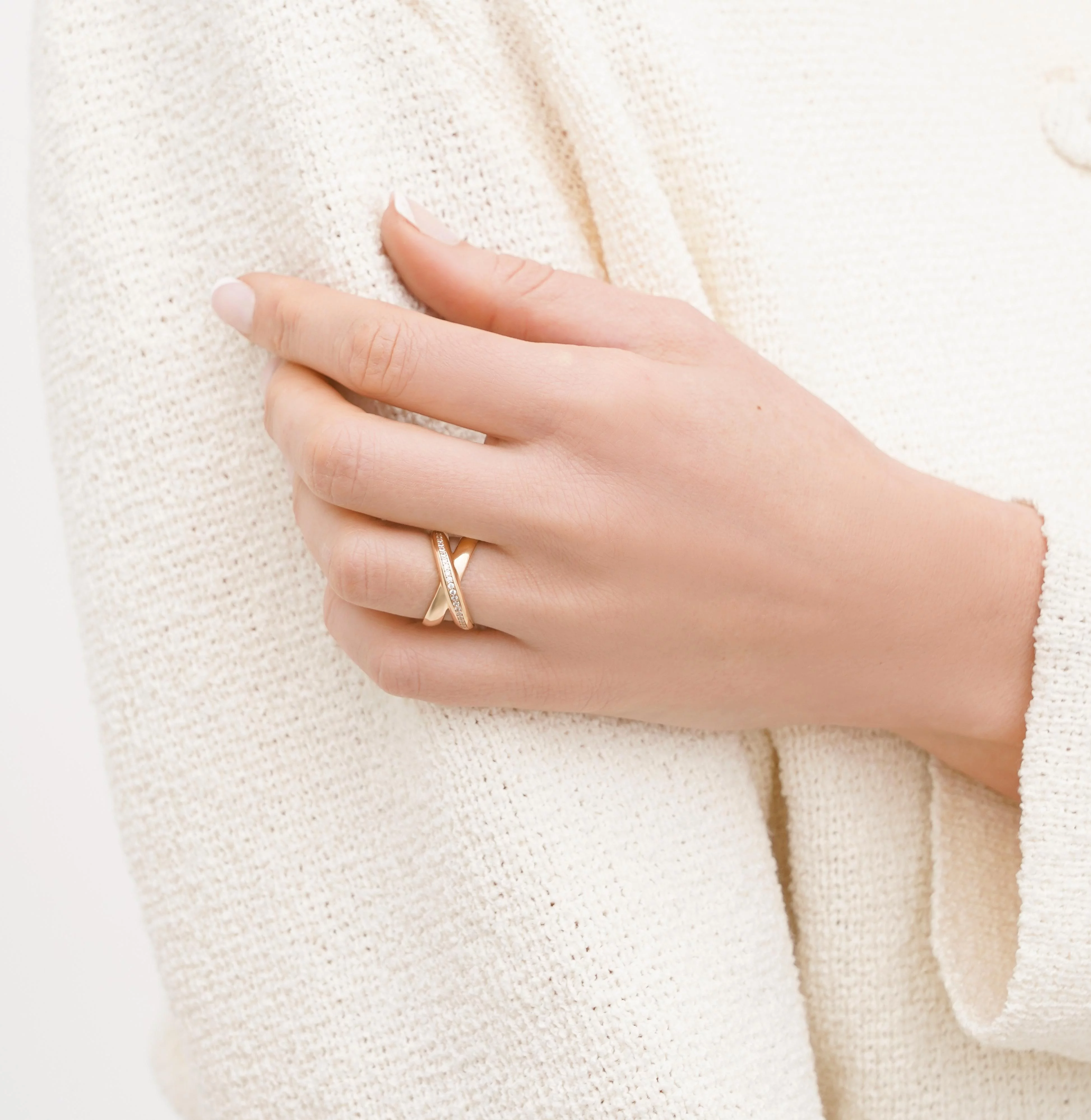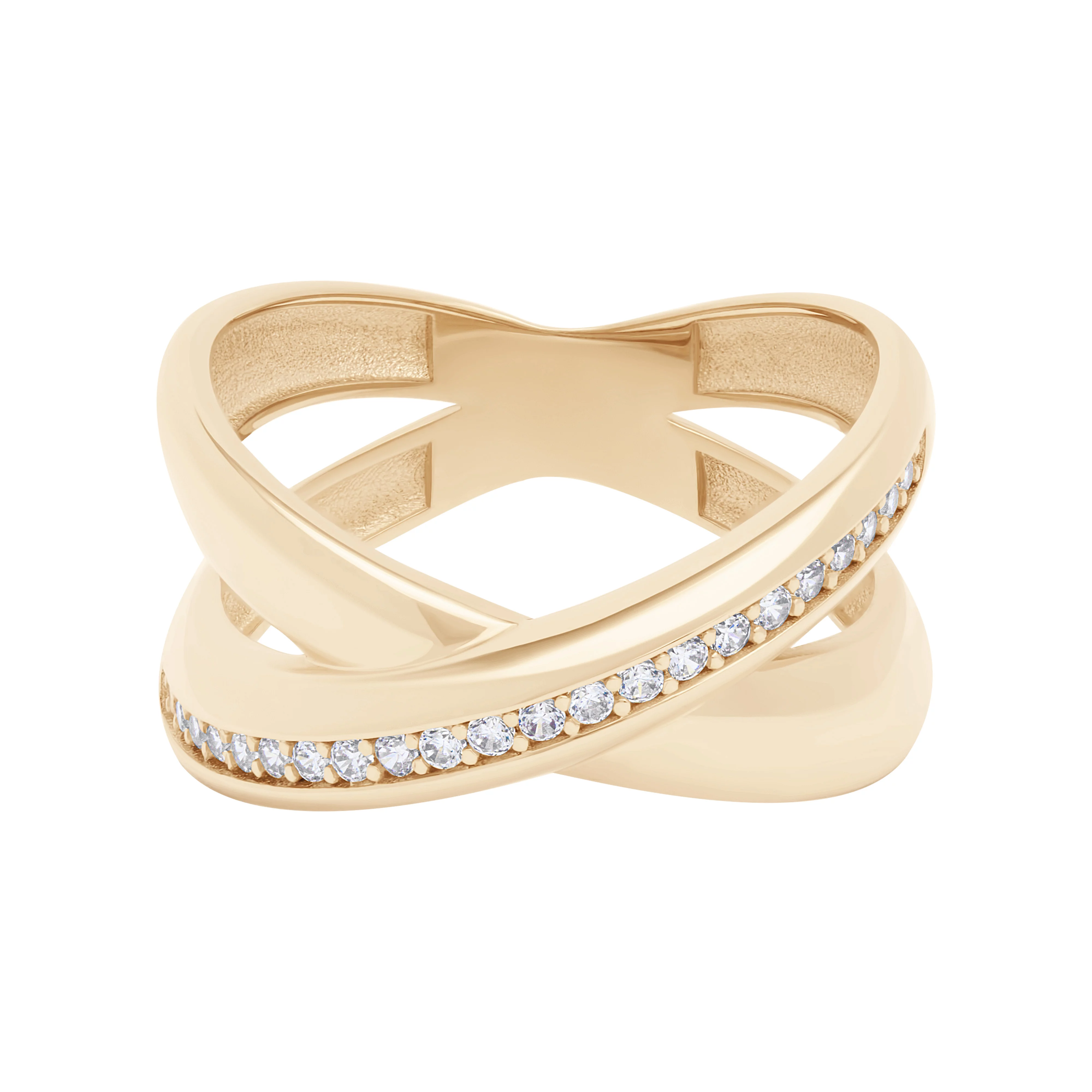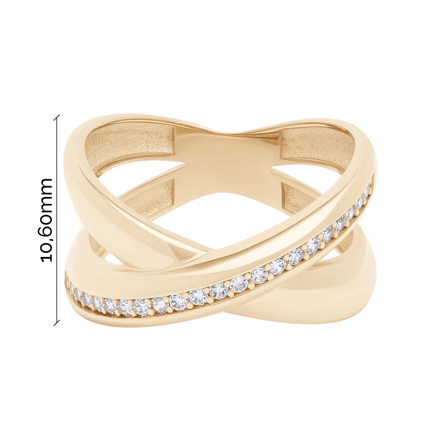 Каблучка широка з червоного золота "Переплетіння" з фіанітами - 1736137