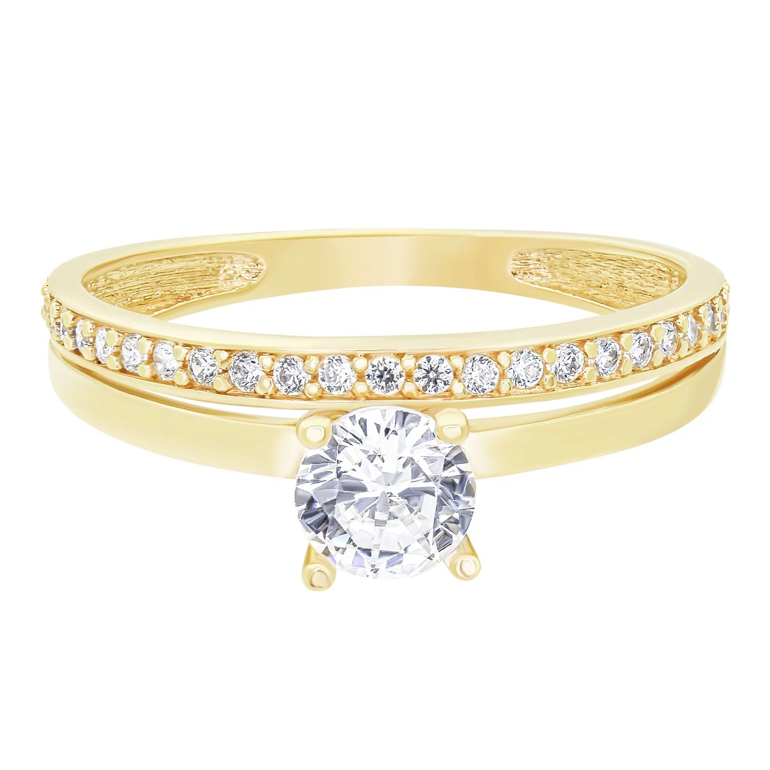 Подвійна каблучка у червоному золоті з фіанітами - 1578851