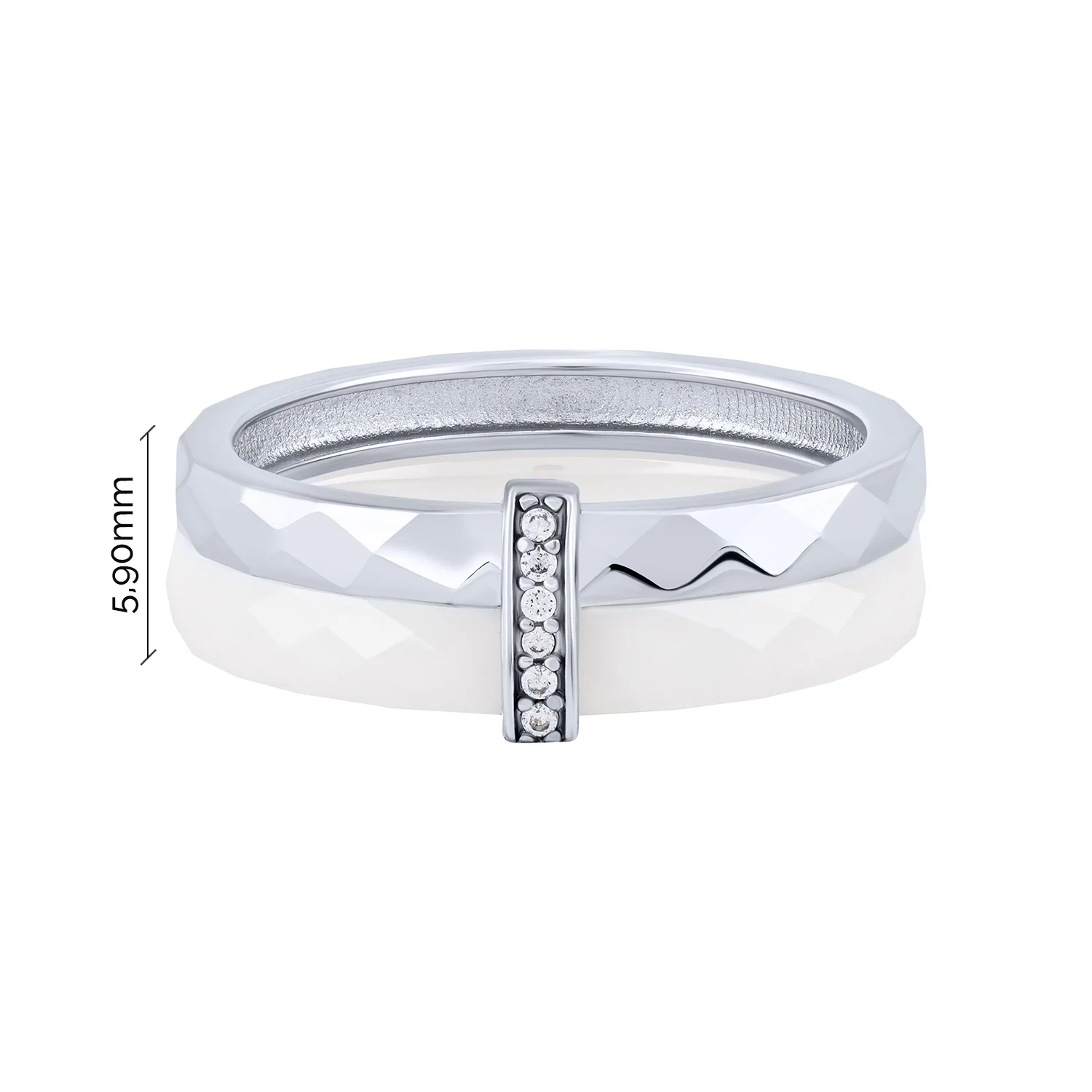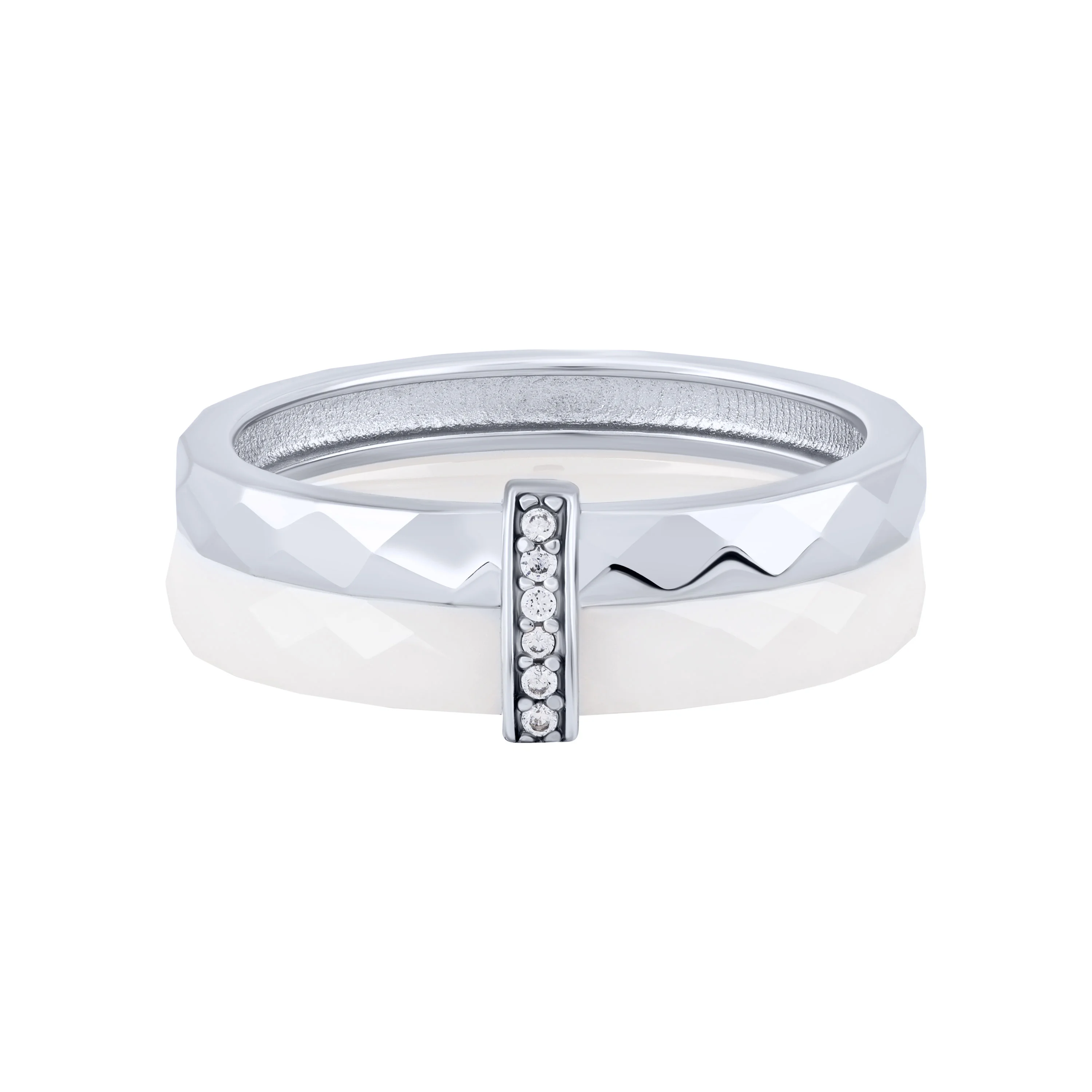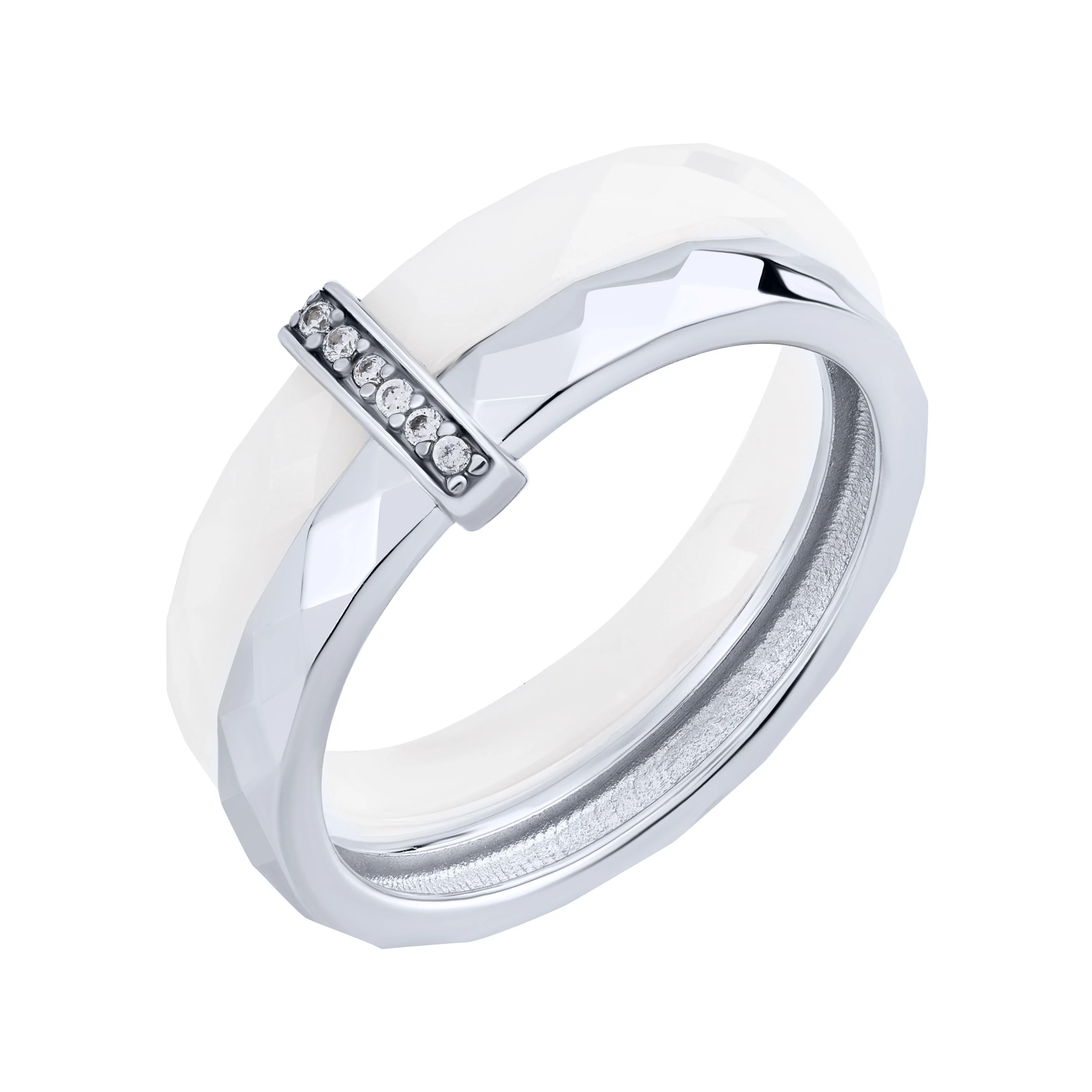 Подвійна срібна каблучка з керамікою та фіанітами - 2104522