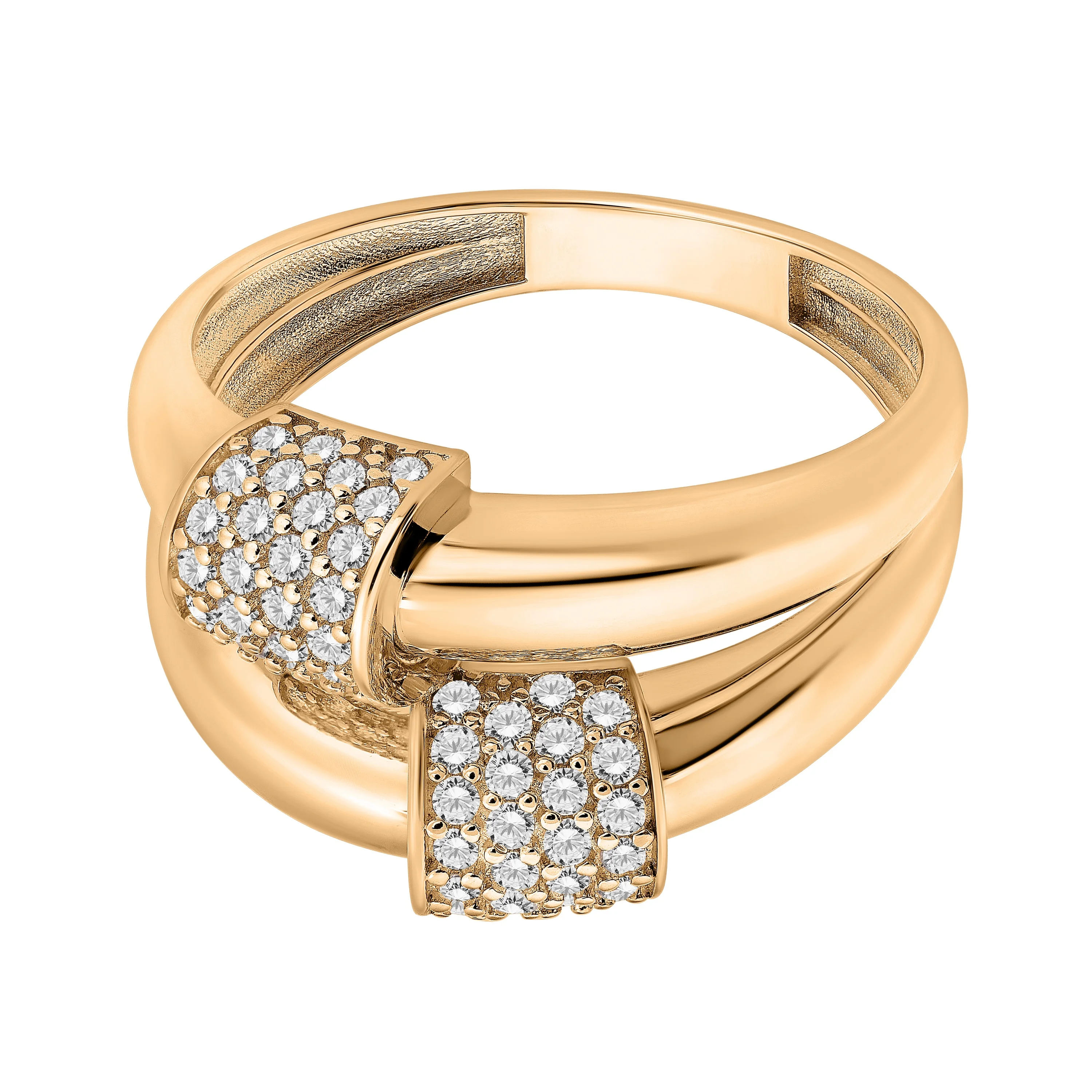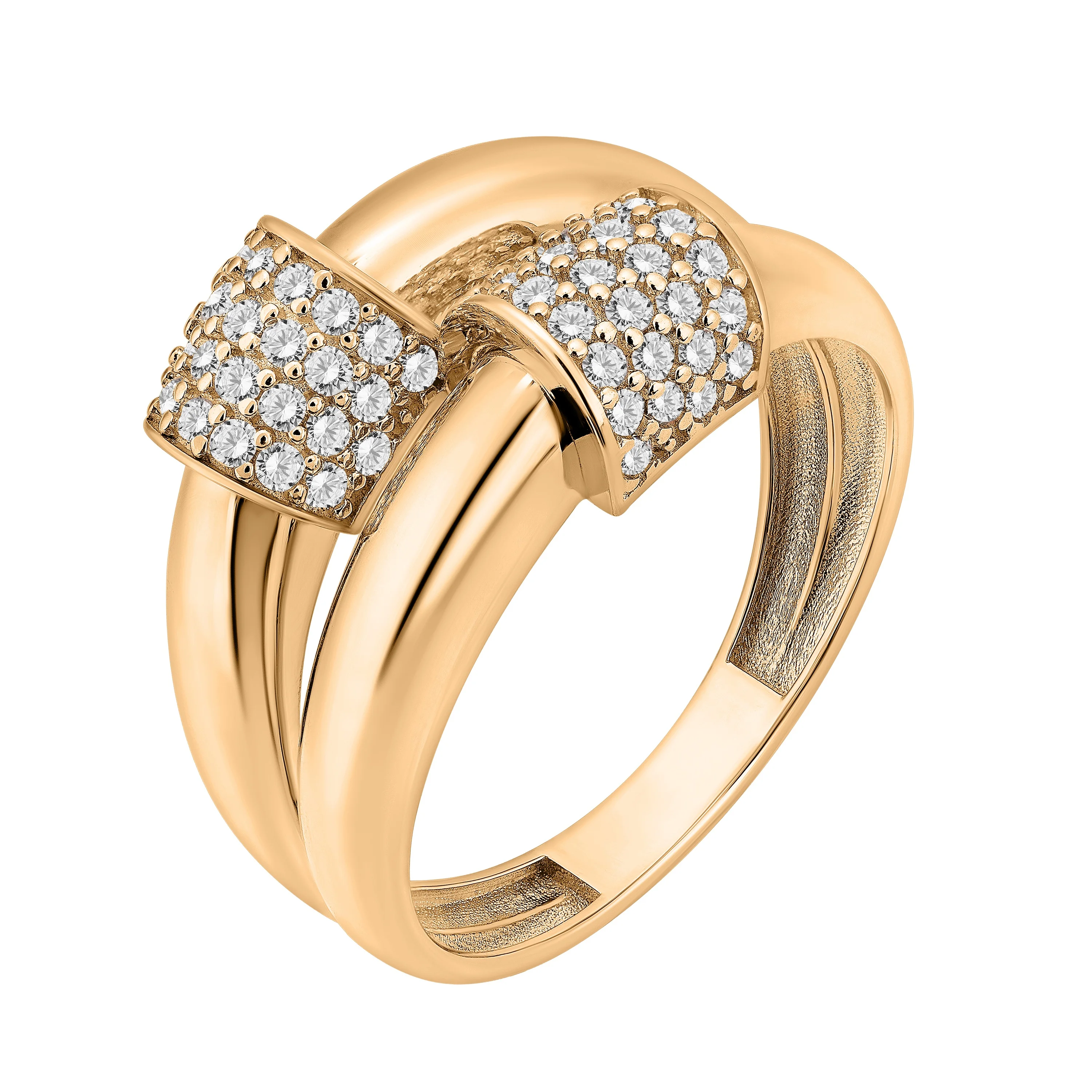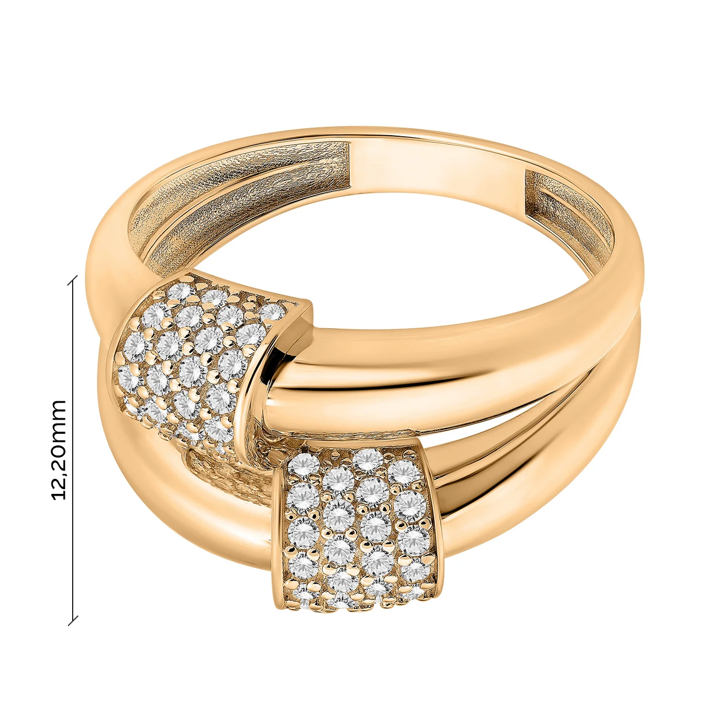 Подвійна широка каблучка з червоного золота з фіанітами - 2162687