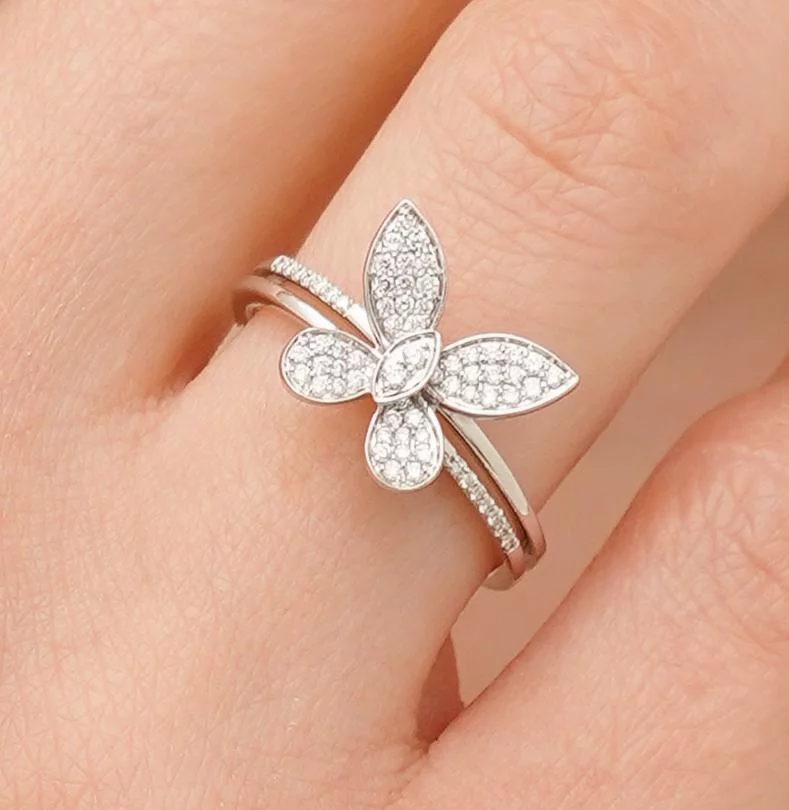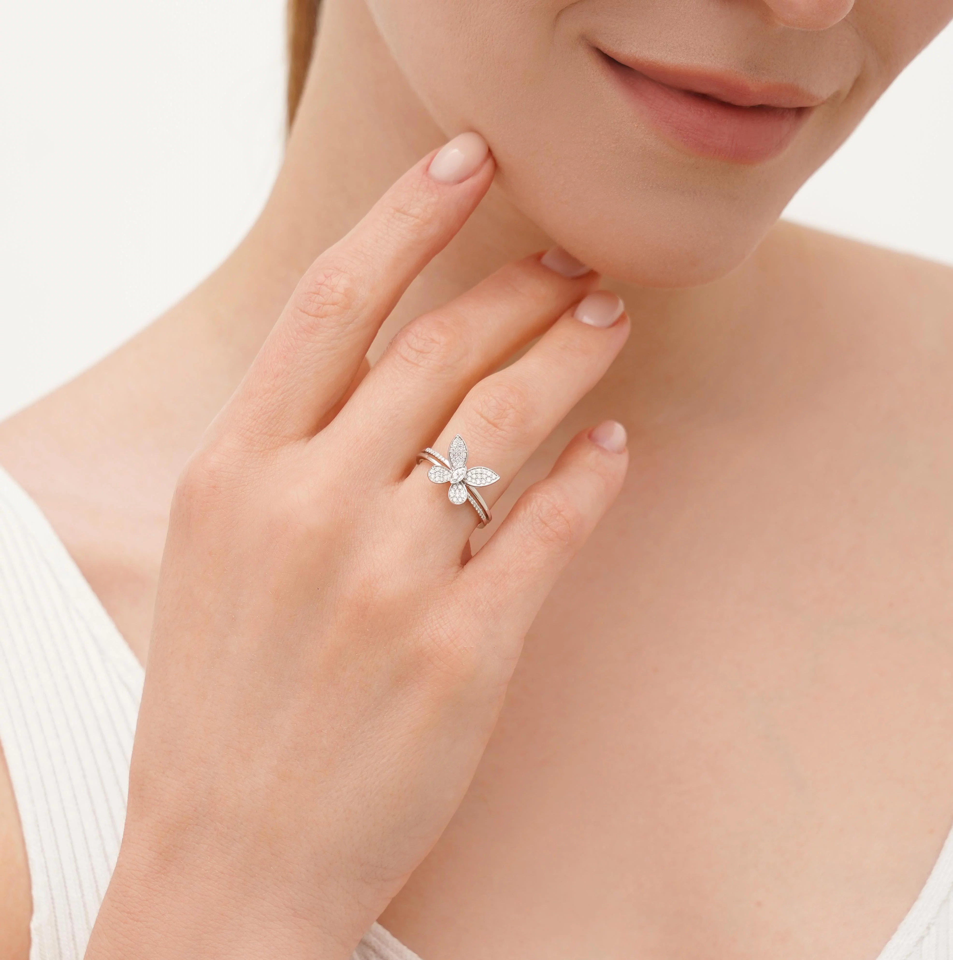 Подвійна золота каблучка "Метелик" з діамантами - 1670057