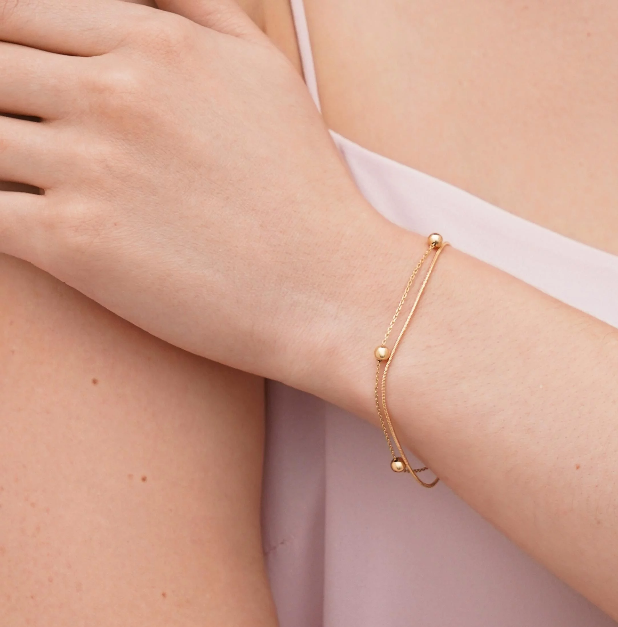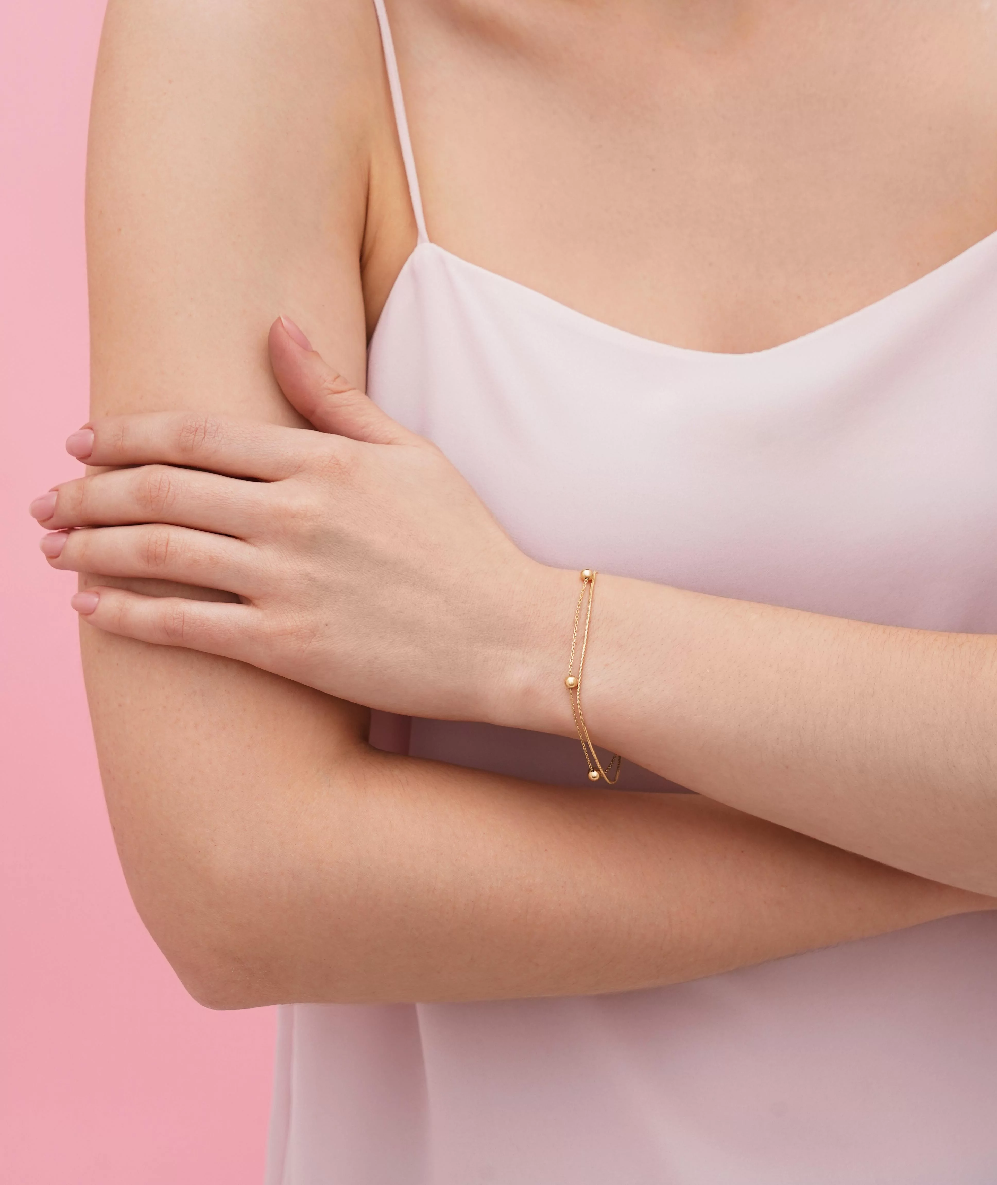Потрійний браслет з комбінованого золота "Кульки" плетіння якір - 1824925