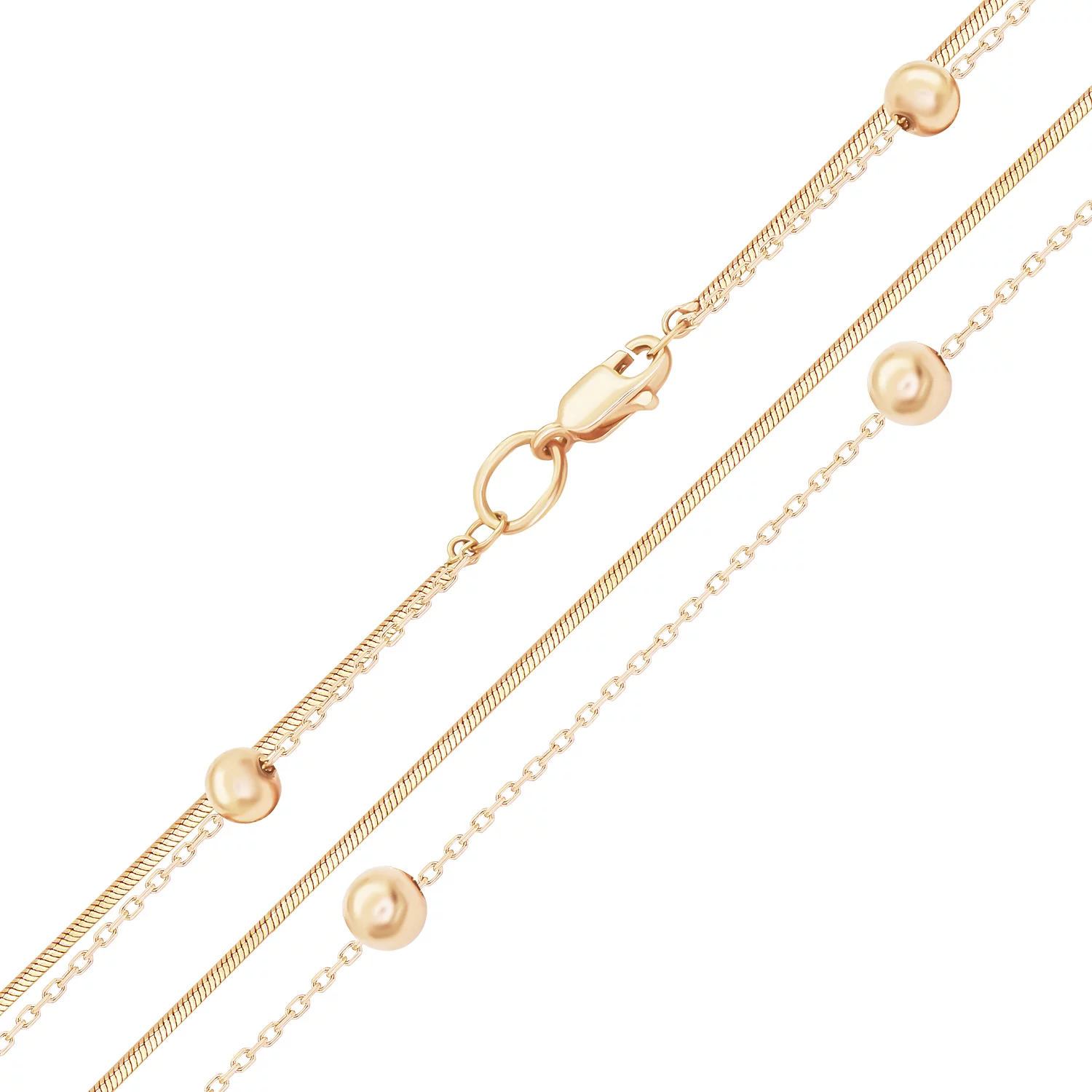 Браслет подвійний з білого золота якірного плетіння з кульками - 1825510