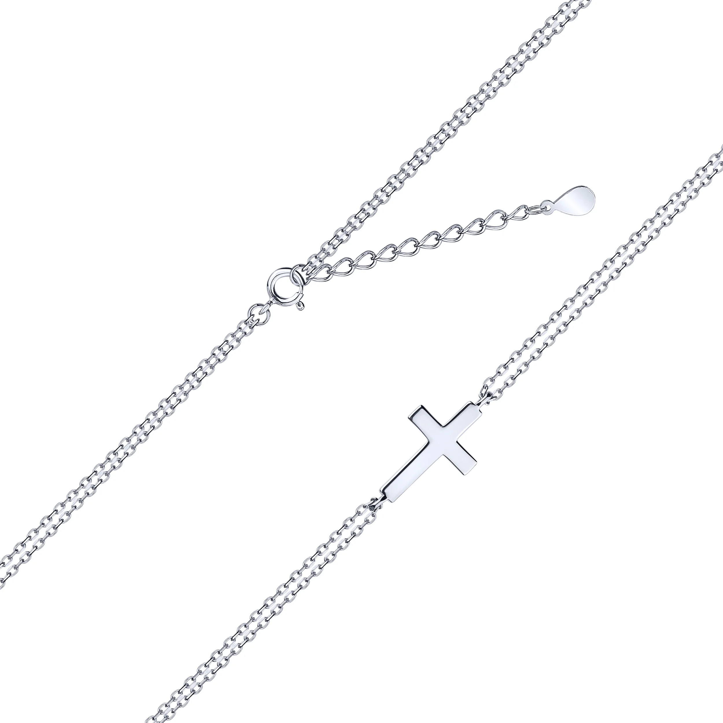 Подвійний браслет зі срібла "Хрестик" плетіння якір - 2100110