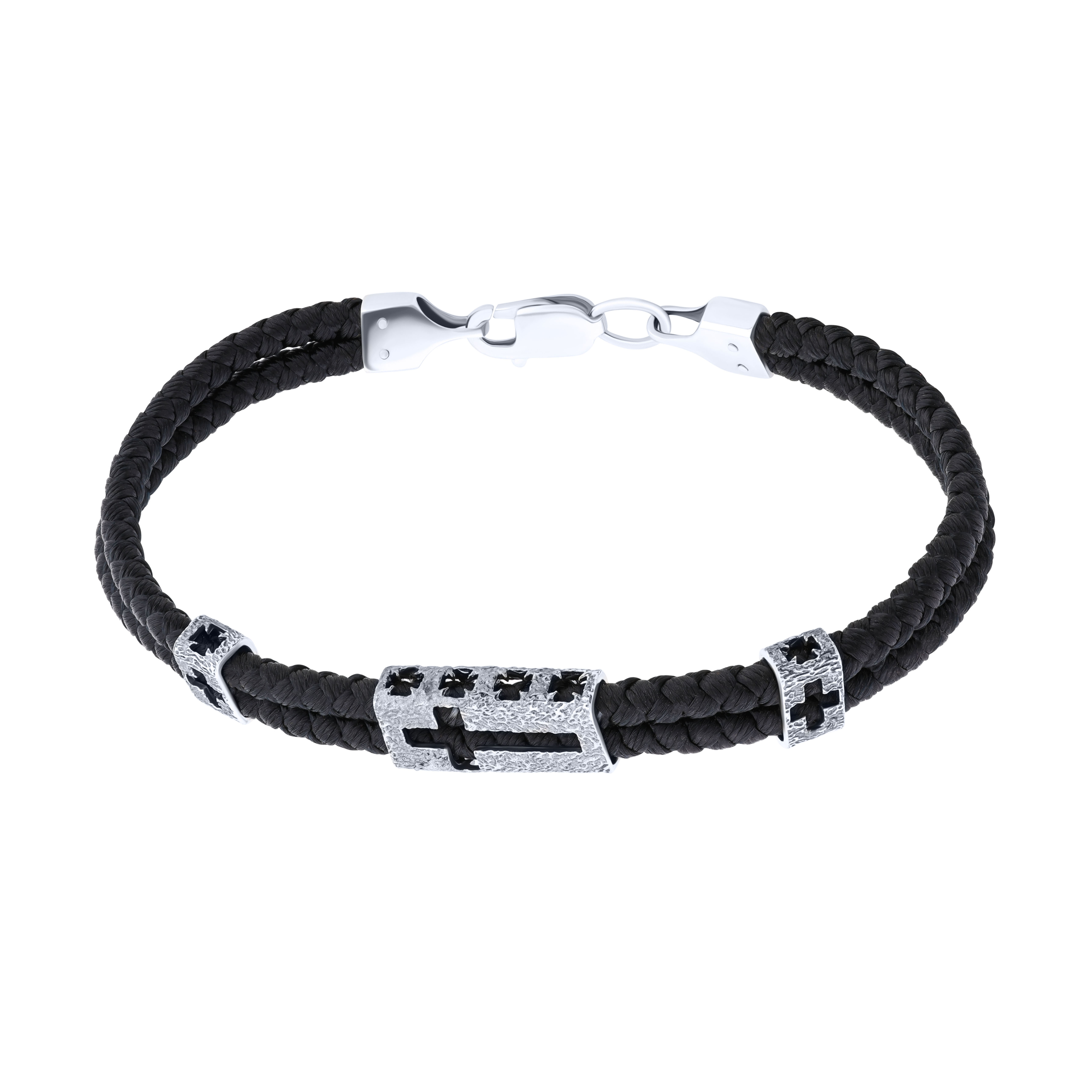 Подвійний браслет із шовку зі срібними вставками і чорнінням - 2149183