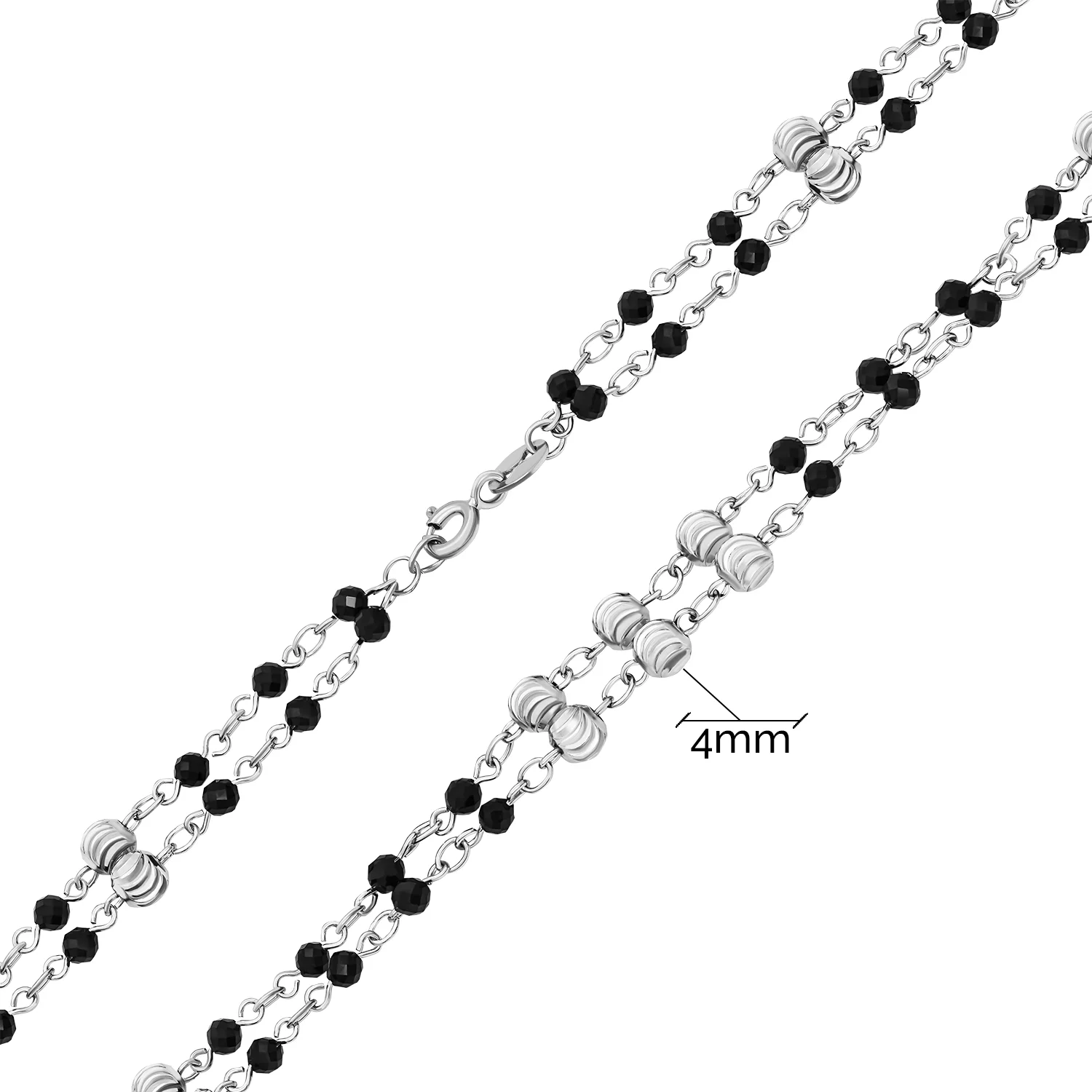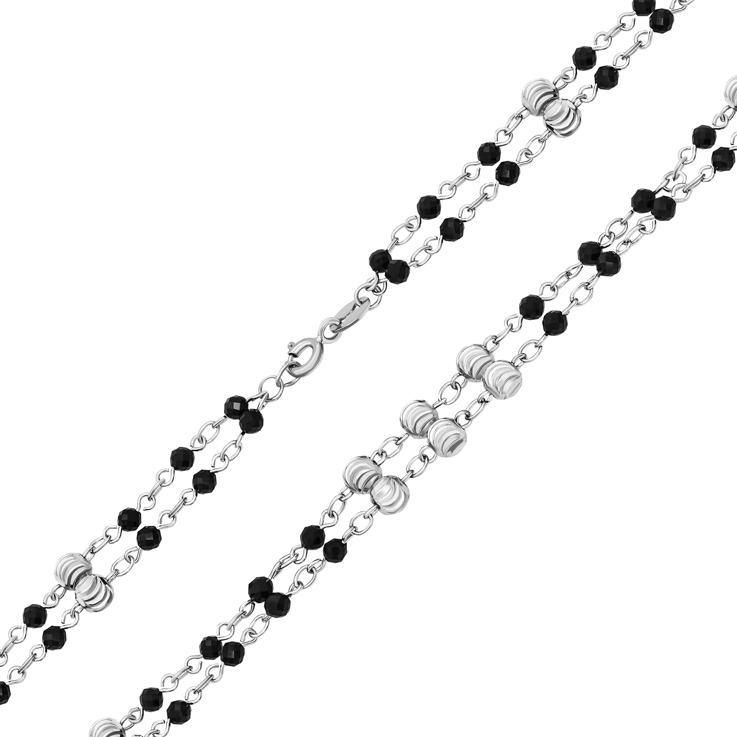 Подвійний срібний браслет з фіанітом і кульками подвійне плетіння - 1715007