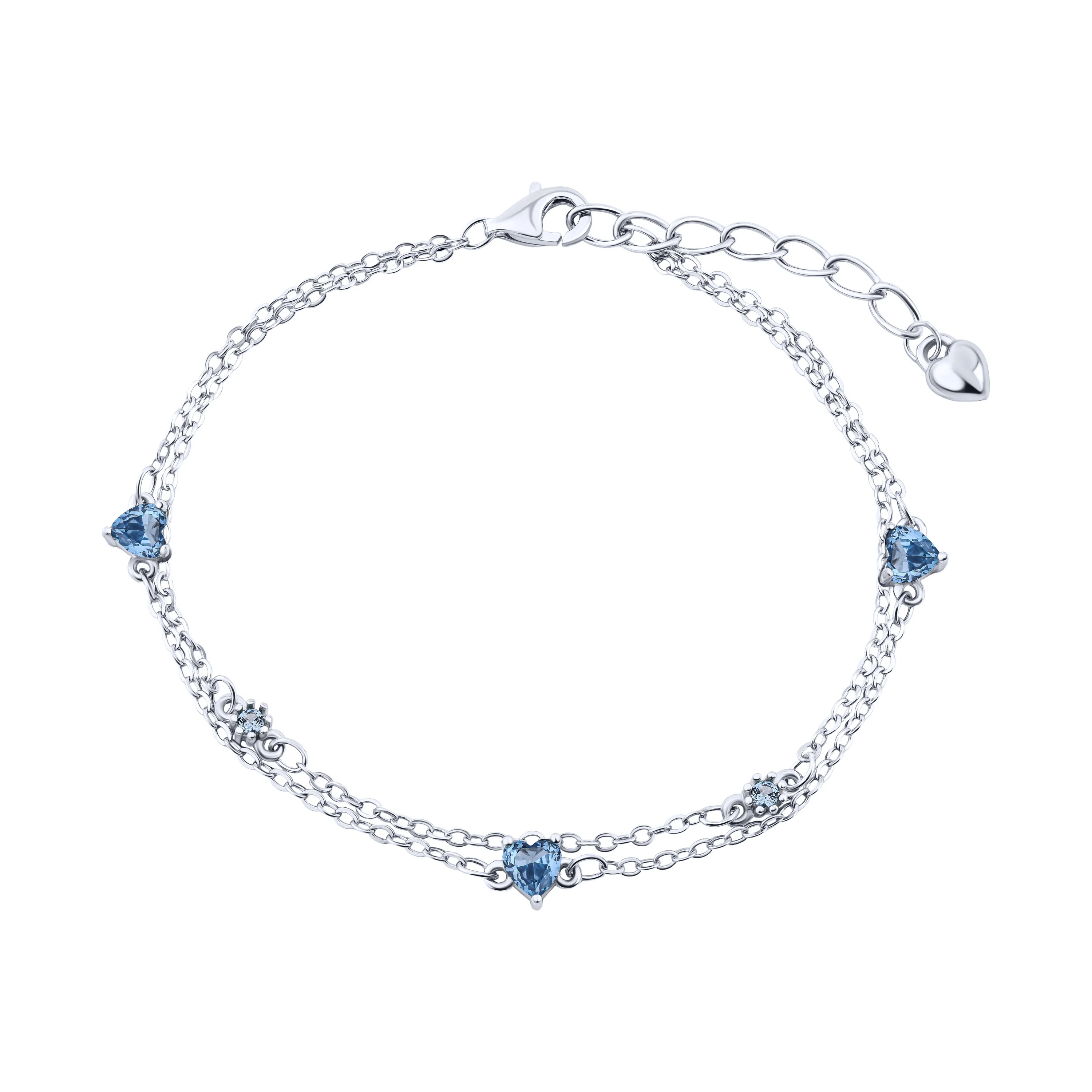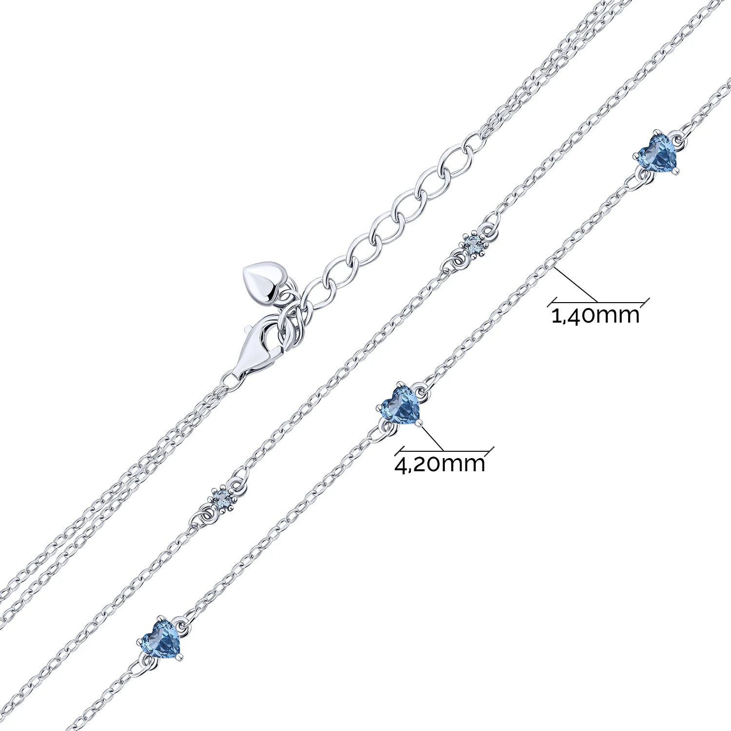 Подвійний срібний браслет "Сердечка" плетіння якір - 2153501