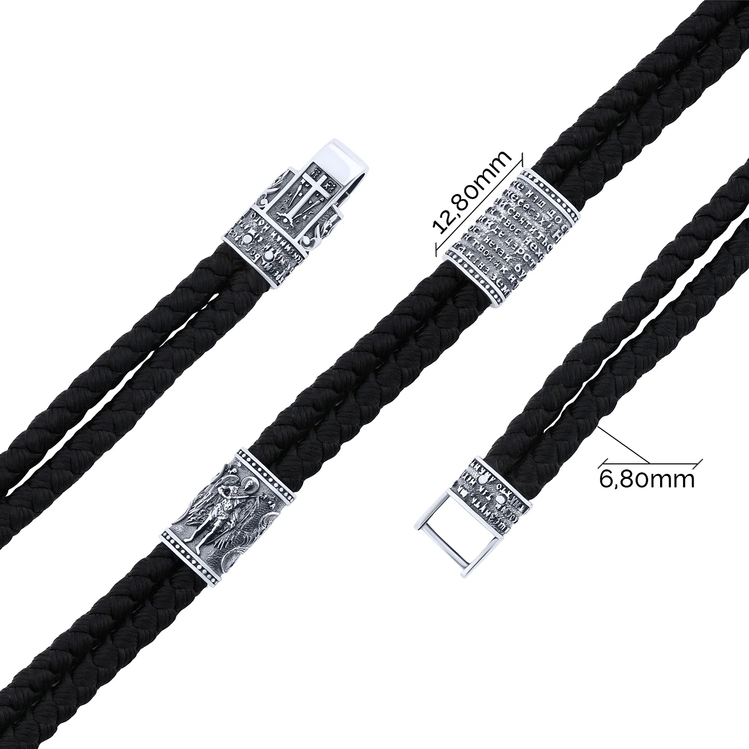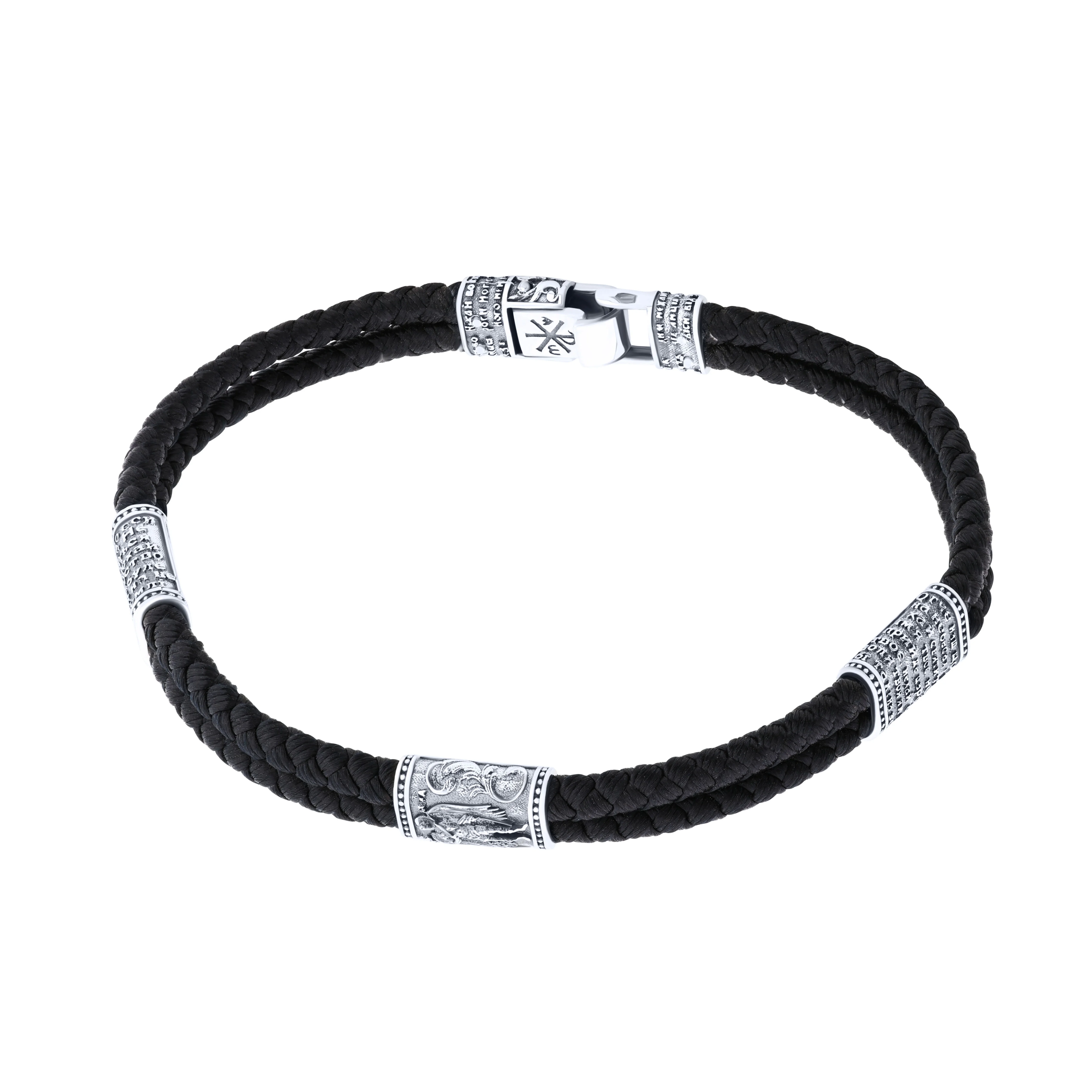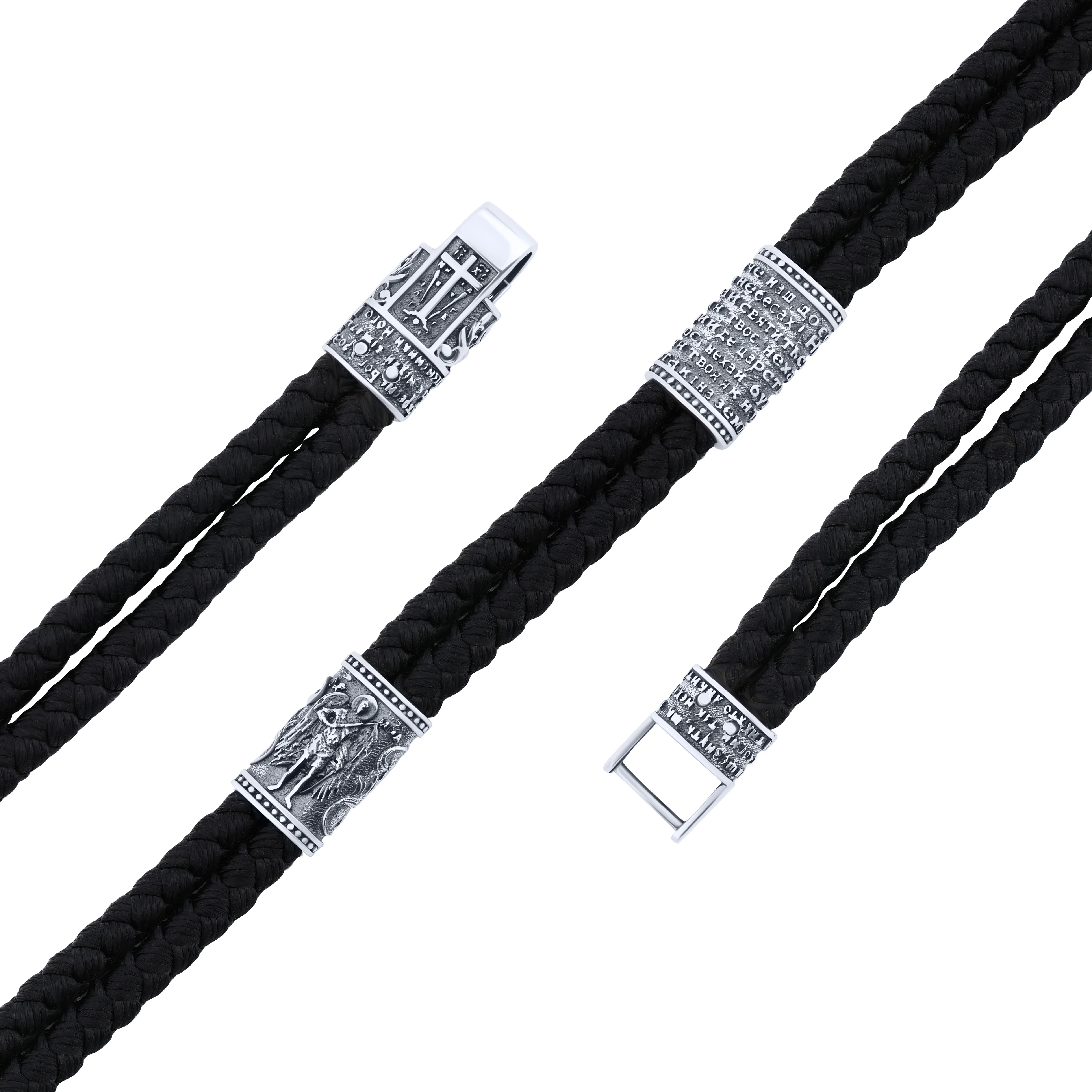 Подвійний шовковий браслет зі срібними вставками та чорнінням - 2149181