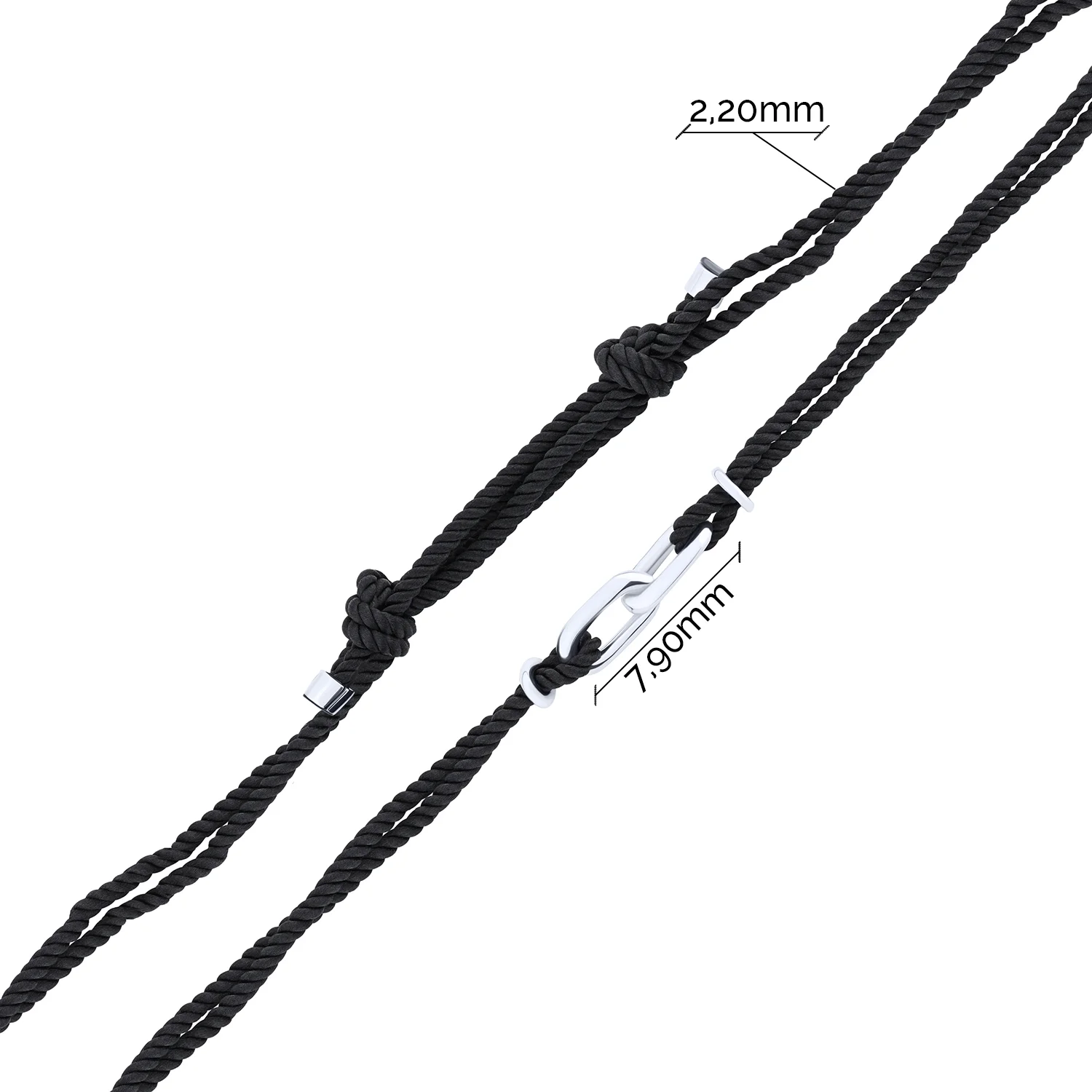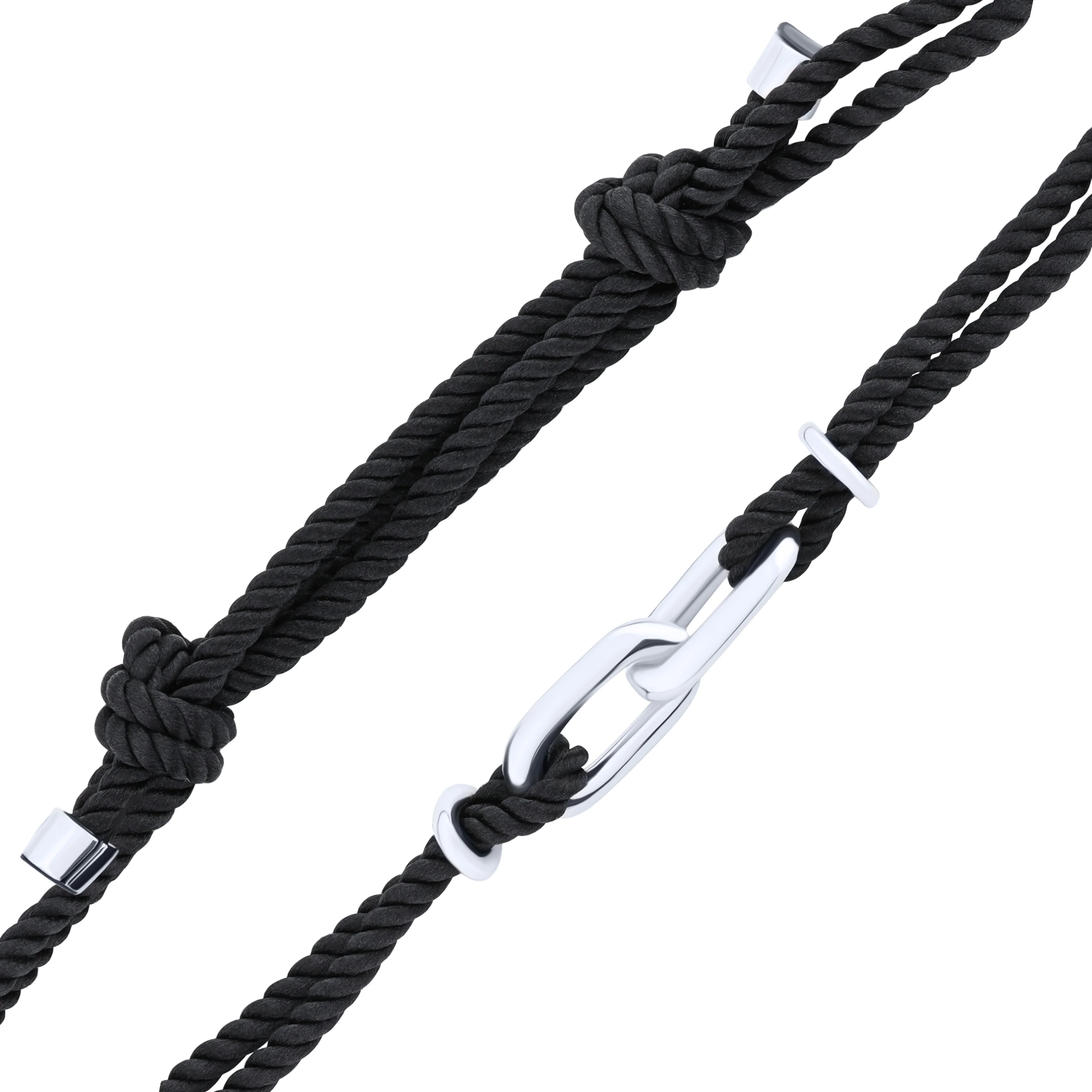 Подвійний шовковий браслет "Ланки" зі срібними вставками - 2149195