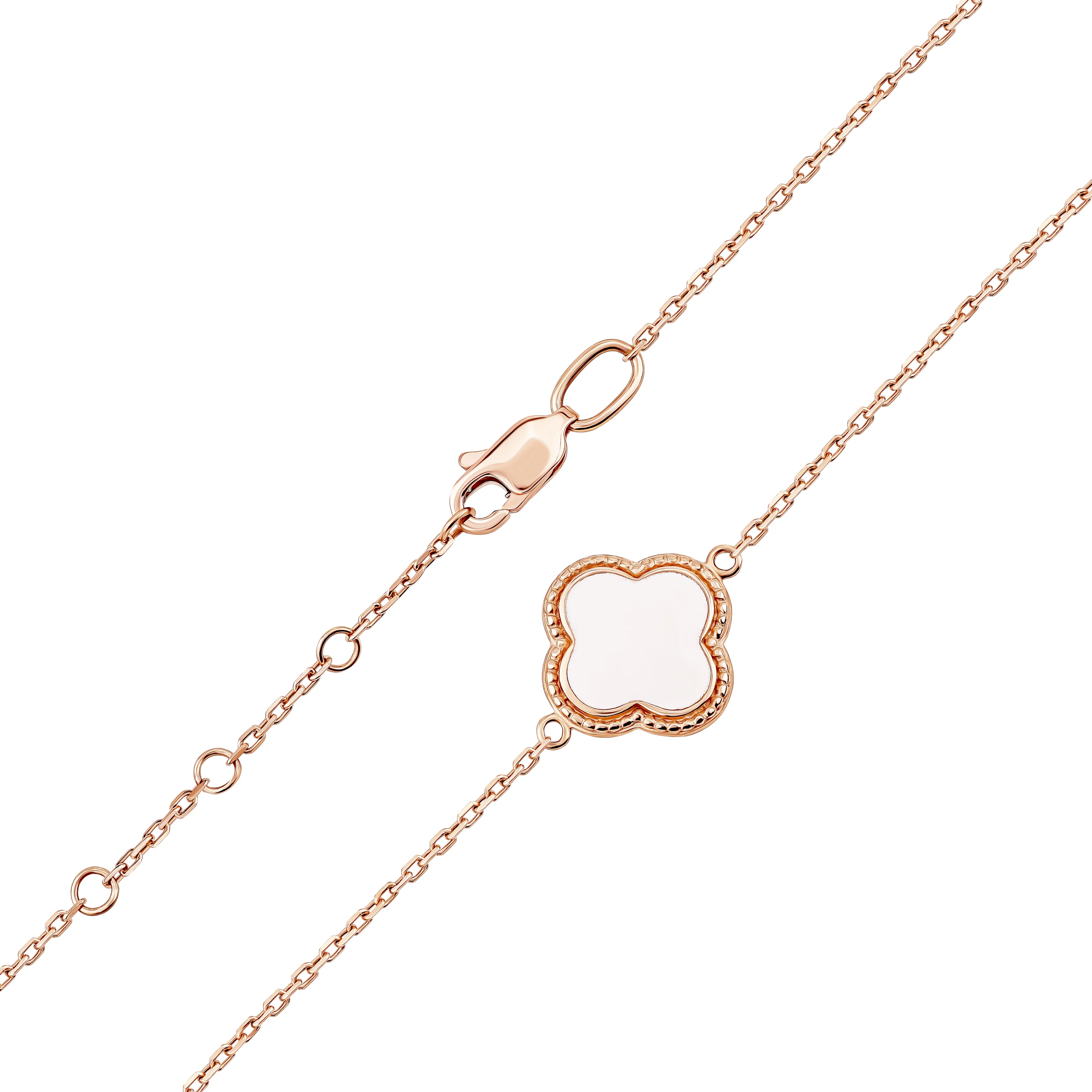 Браслет "Конюшина" з червоного золота з емаллю якірного плетіння - 1657947