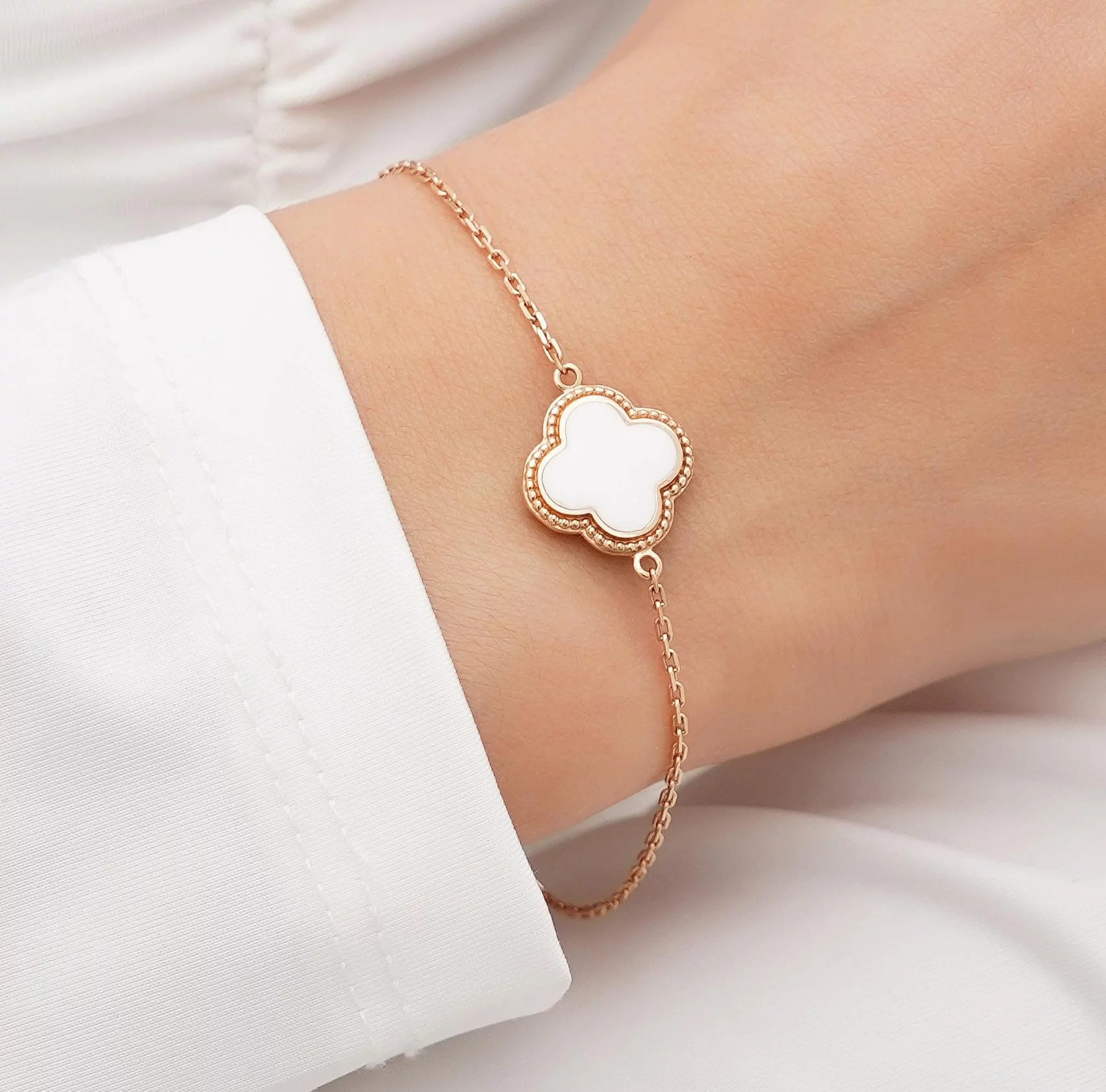 Срібний браслет з підвісками "Конюшина" з емаллю та фіанітами плетіння якір - 1693629