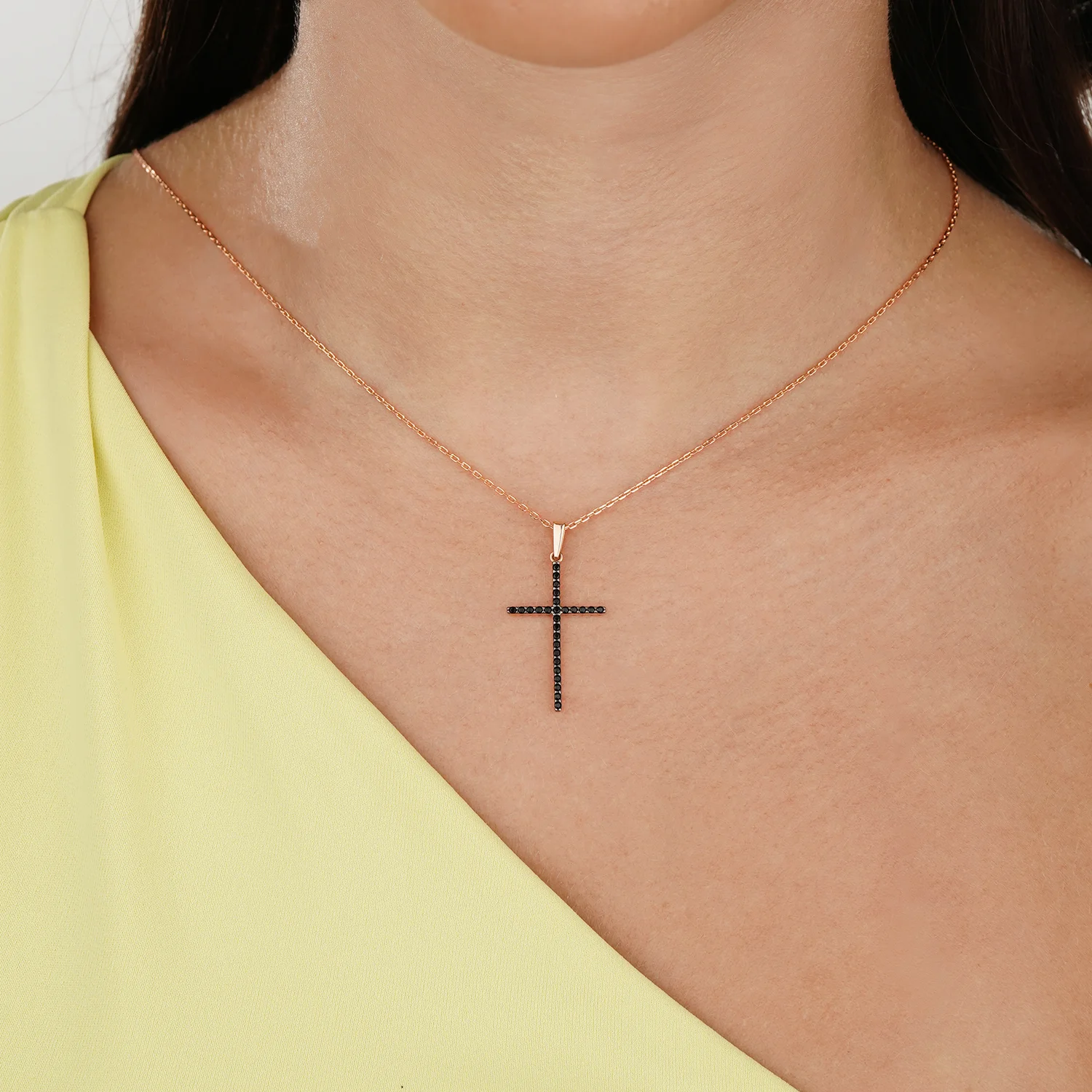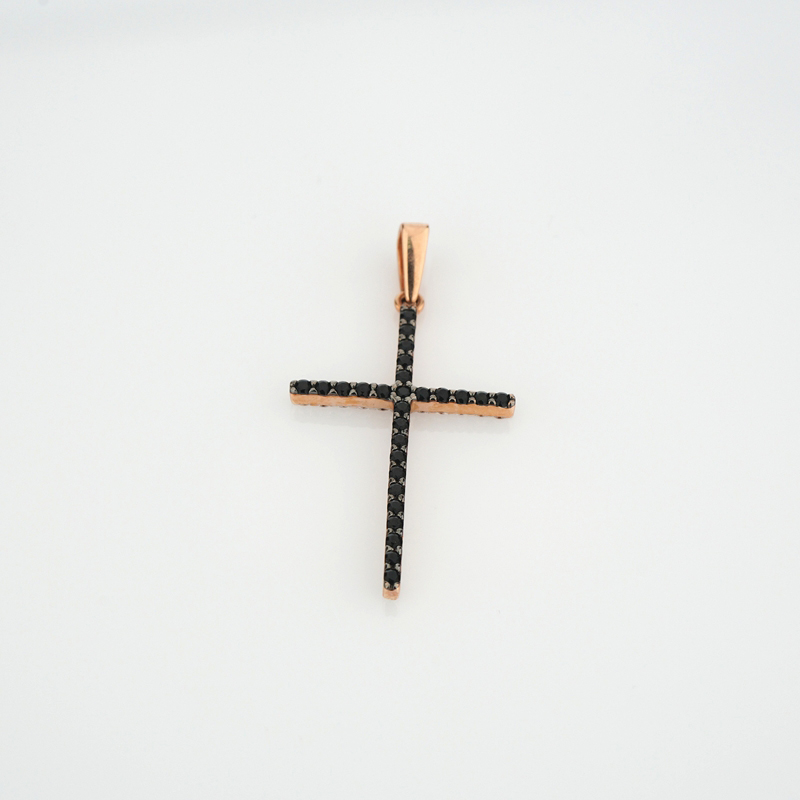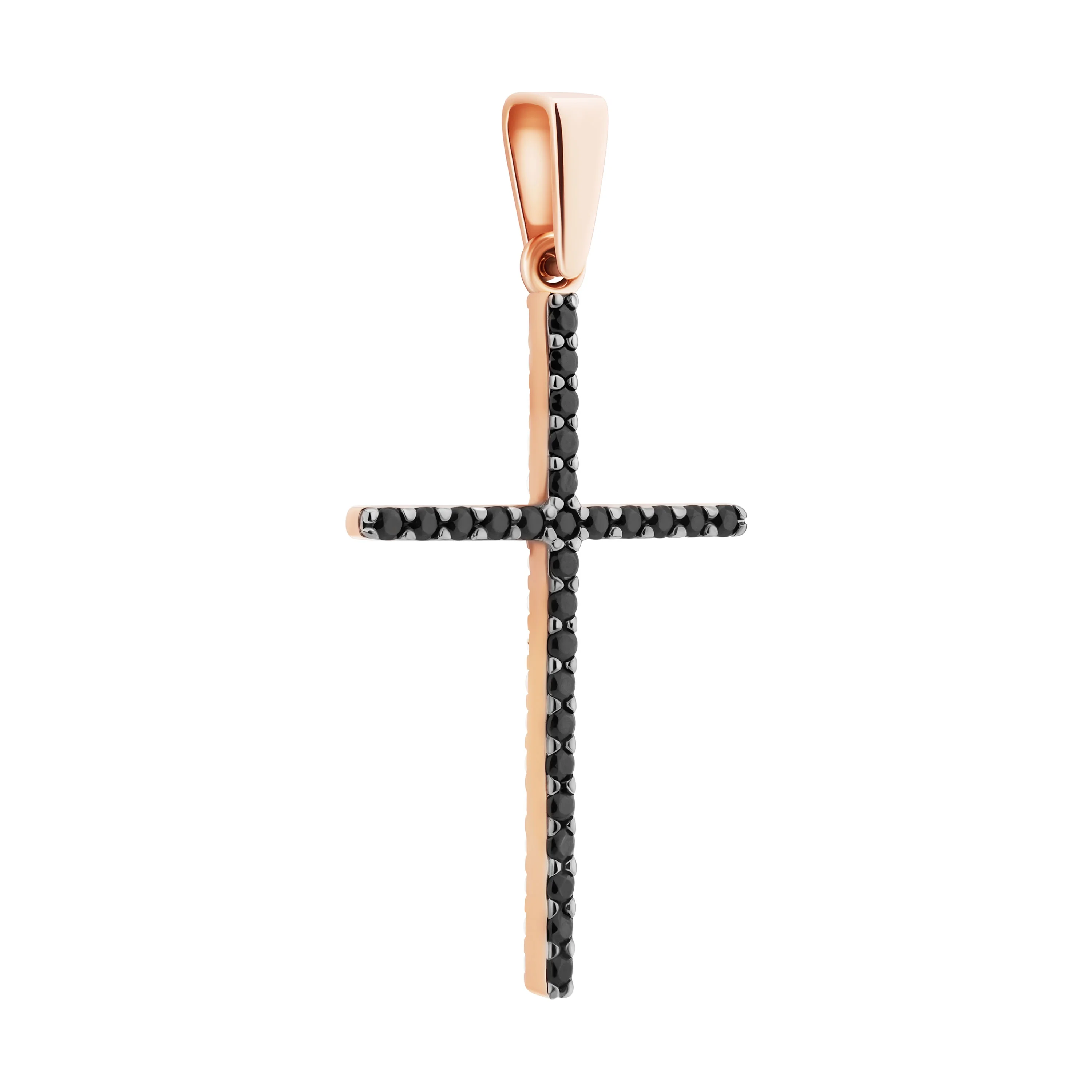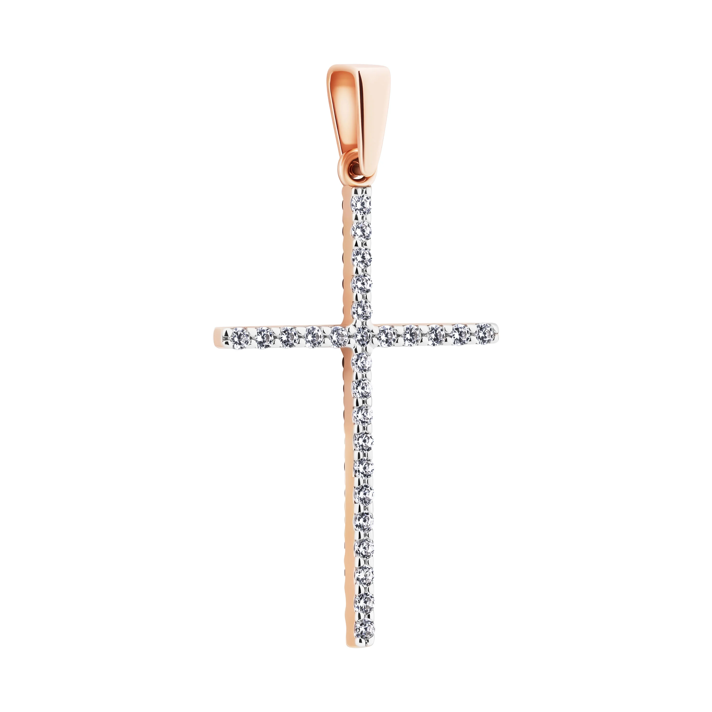 Декоративний хрестик із червоного золота з доріжкою фіанітів - 1545402