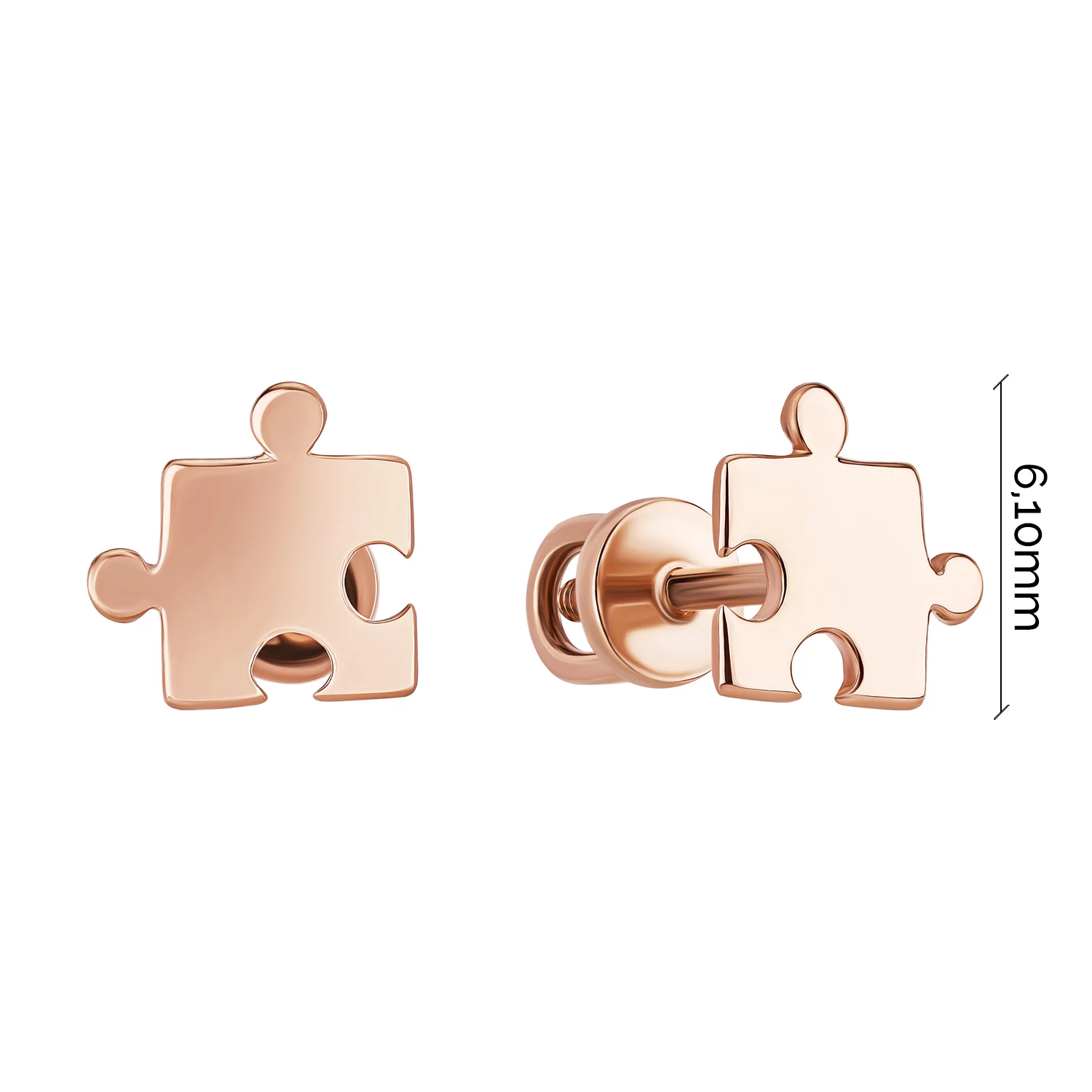 Сережки-гвоздики з червоного золота "Квадрат" зі знімною частиною - 1617432