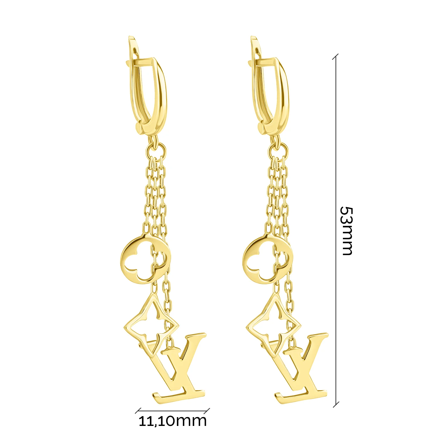Елегантні сережки-гвоздики з підвісом в геометричному стилі з комбінованого золота - 1918777