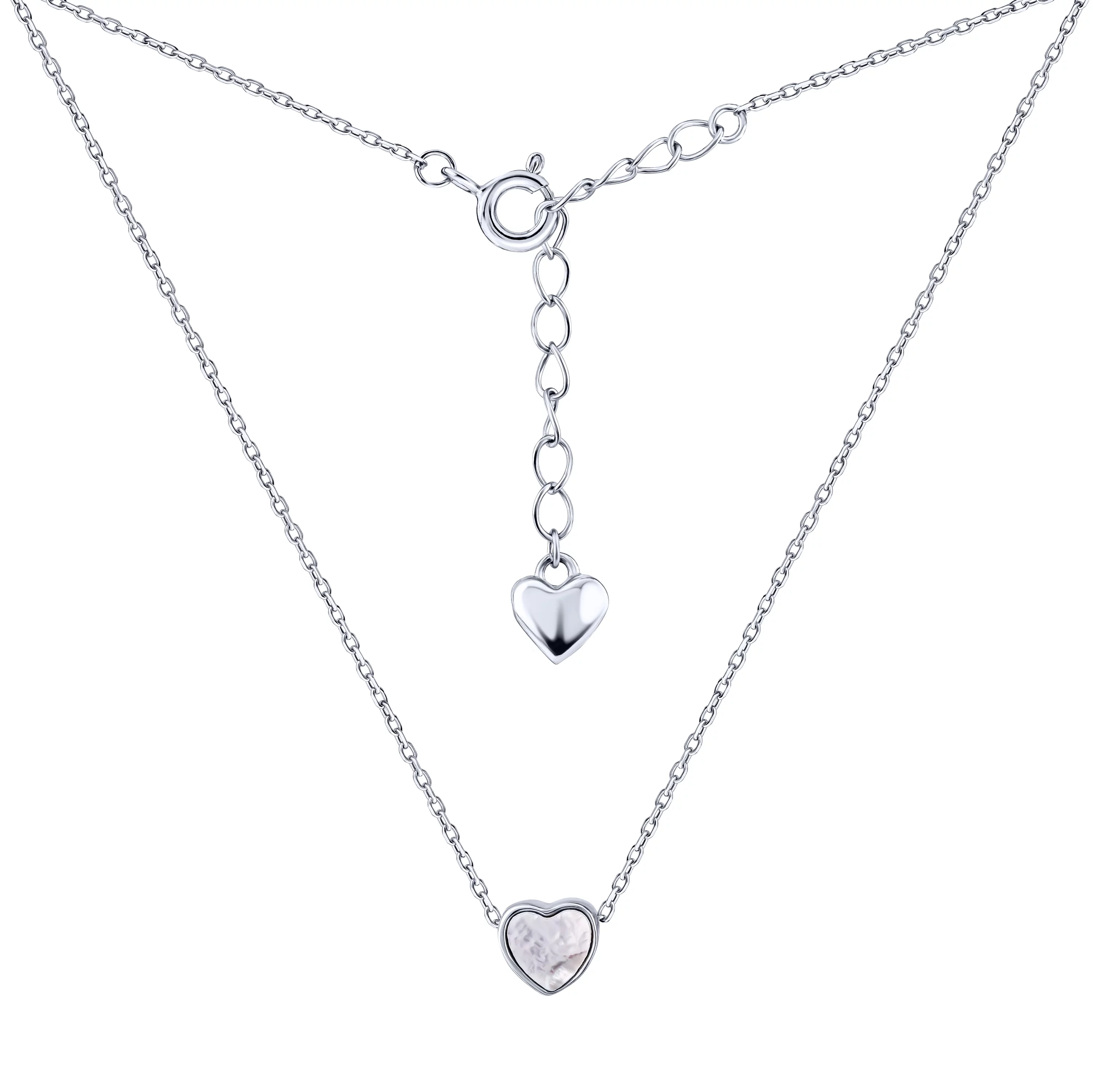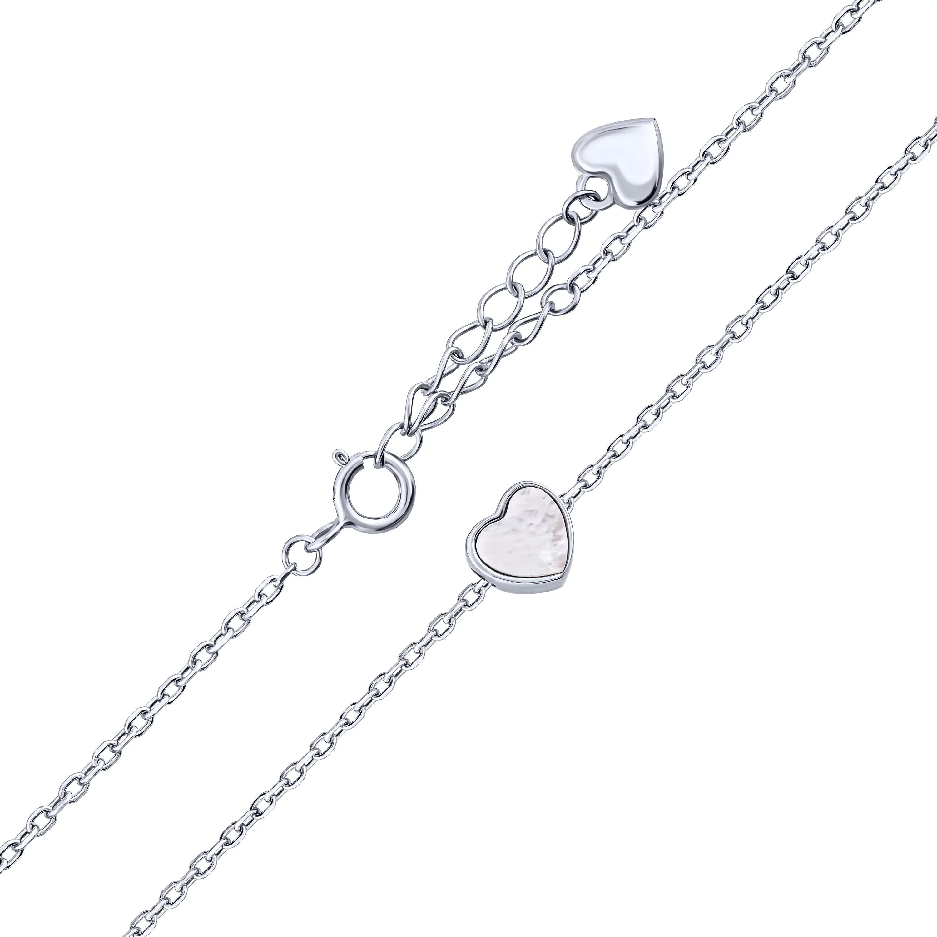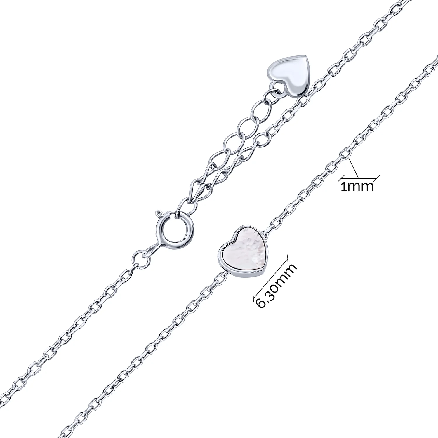 Срібне кольє з підвісом "Конюшина" з перламутром з фіанітами та якірним плетінням - 1935221
