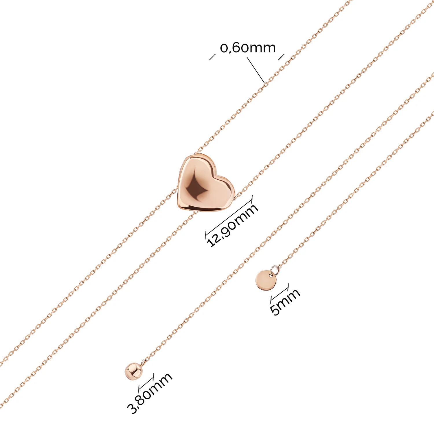 Ланцюжок з підвісом "Серце" з червоного золота з якірним плетінням - 1919615
