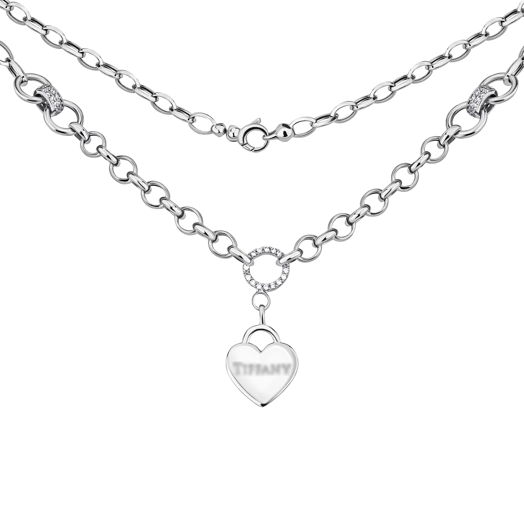 Кольє з червоного золота з підвісом "Серце" з фіанітами з плетінням шопард та якір - 1878746