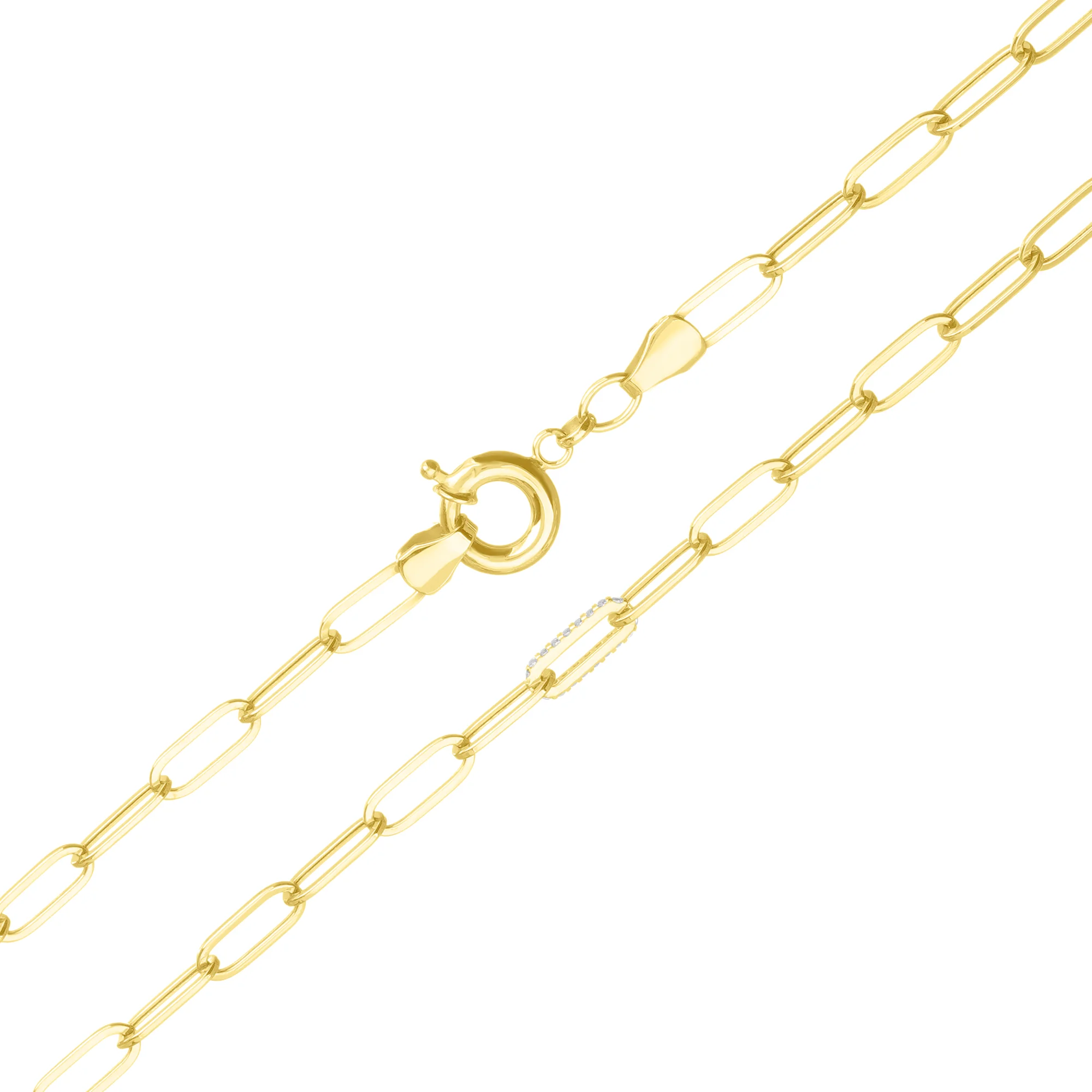 Ланцюжок з підвісом з жовтого золота з фіанітом якірне плетіння - 1688581